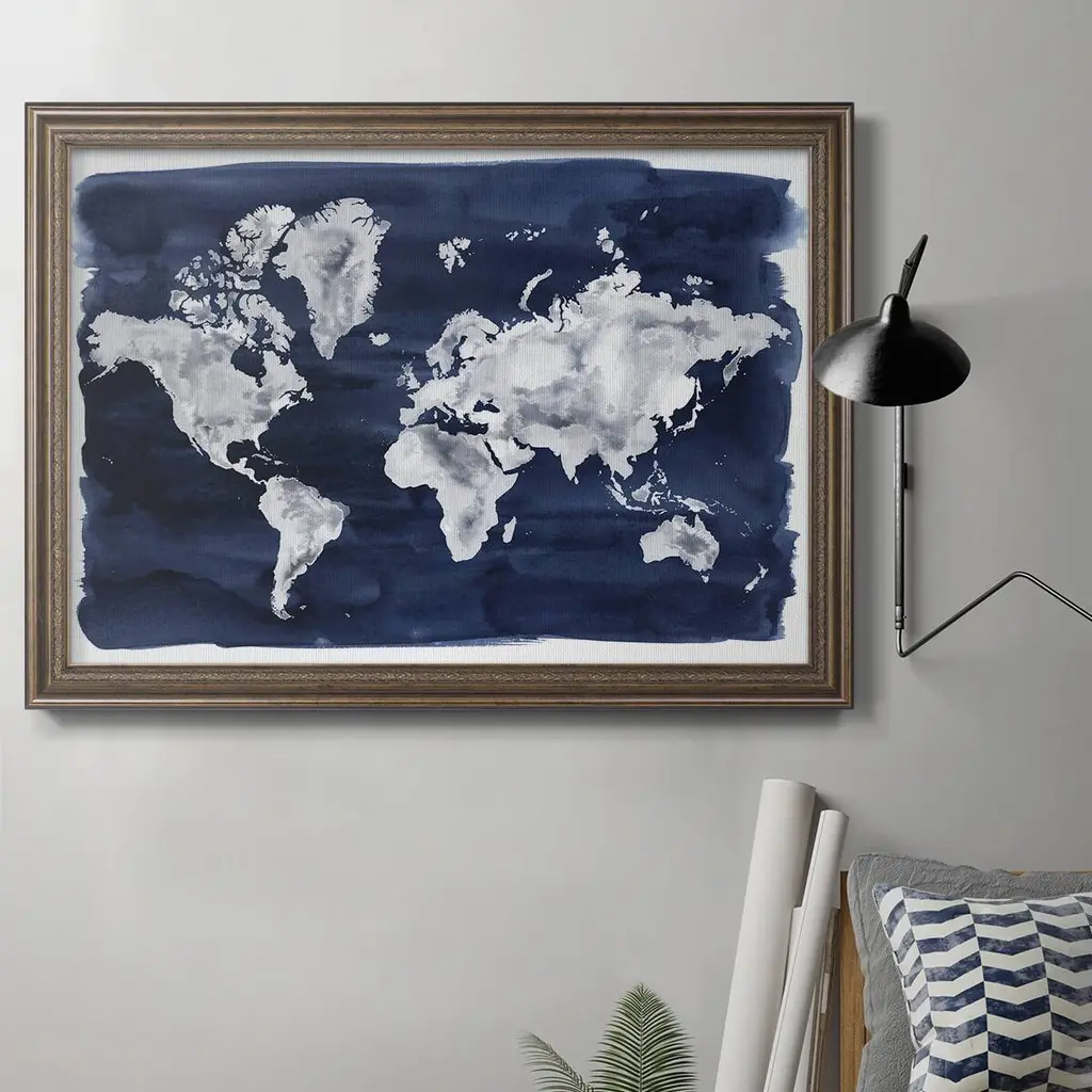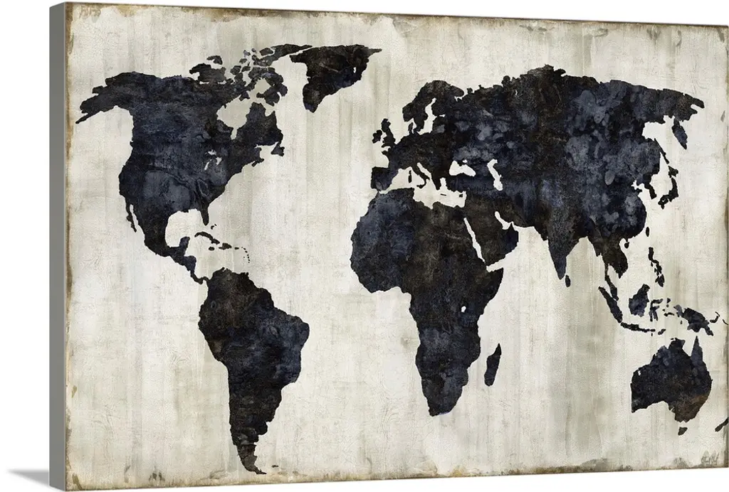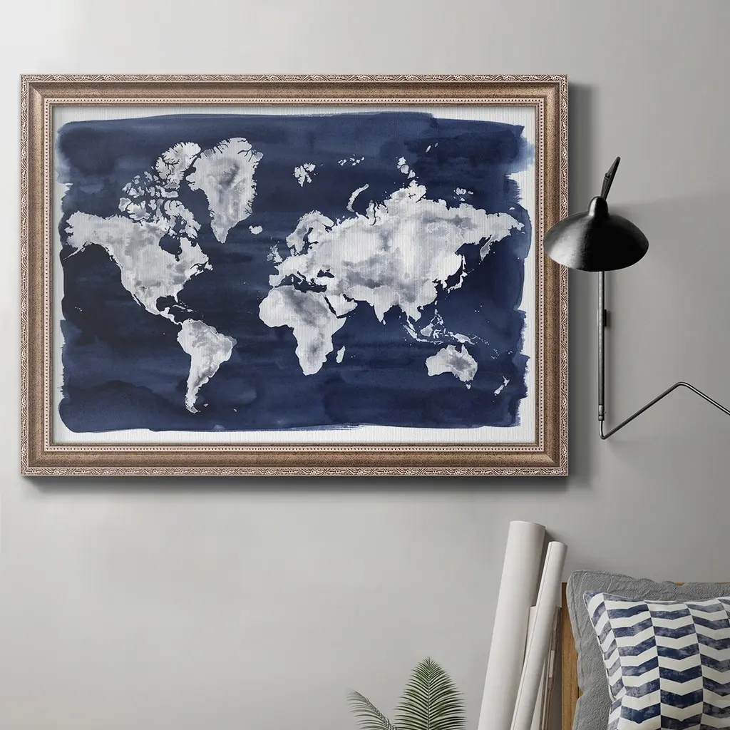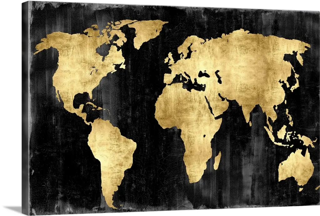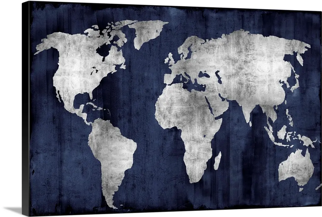 Stupell Navy And Distressed Gold World Map Canvas Wall Art - 16 X 20