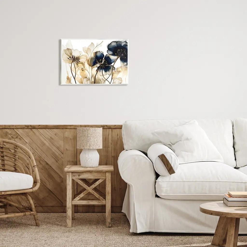 Stupell Navy & Gold Flowers Wall Plaque Art Design By Lsr Design Studio - 19 X 13