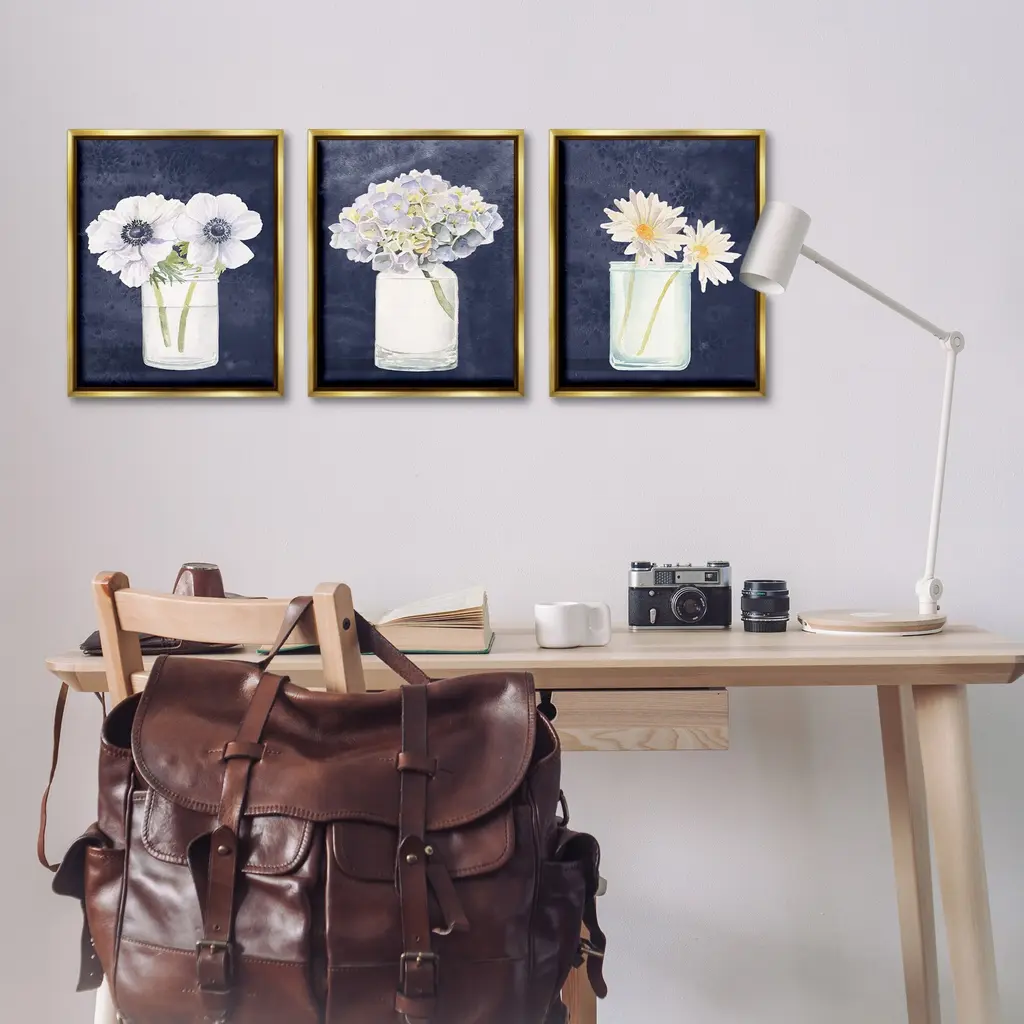 Elevate your home or office to the next level with Stupell Framed Floating Canvas Wall Art. Our premium hand-stretched canvas is mounted securely into a sturdy lightweight frame. The museum-style gap between the wrapped canvas and the box frame gives the illusion of floating artwork. Stupell Wall Art is made in the USA.Features: Dimensions: 3 Piece Set, Each Frame is 17 x 1.7 x 21Three Piece Floater Framed Canvas are available as 17x21 or 25x31 Panels. All Floater Frame Products have a 1.7" Depth.Wall Art is Ready to Hang with Hardware Free Hanging. No Installation required. For Easy Set Up Lean or Layer Artwork on Shelf or Against Wall. Artwork is Permently Fixed into the Frame.Our elevated 1.7" Thick Floating Frame is the perfect complement to our canvas style Wall Art. We use only the highest quality inks in house with industry leading printing solutions. Canvas is hand stretched over a durable wood foundation and then mounted securly into a Modern Box Frame. Made in the USA.Artwork Relates To: Floral, Flower, Herb, Vase, Still Life, CountryDesign by James Wiens