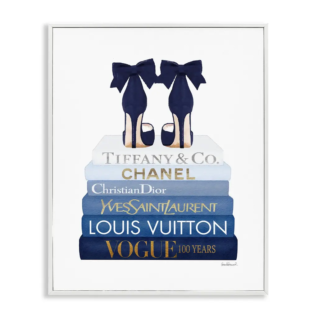 Stupell Navy Blue Heels Chic Bookstack Framed Floater Canvas Wall Art Design By Amanda Greenwood - 17 X 21 - Brown