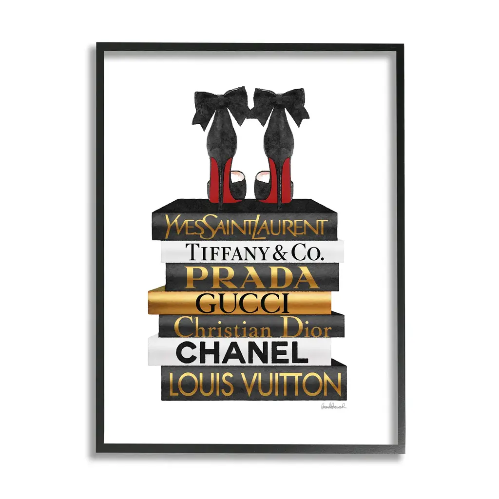 Elevate your home or office to the next level with Stupell Framed Floating Canvas Wall Art. Our premium hand-stretched canvas is mounted securely into a sturdy lightweight frame. The museum-style gap between the wrapped canvas and the box frame gives the illusion of floating artwork. Stupell Wall Art is made in the USA.Features: Dimensions: 17 x 1.7 x 21 Frame, 16 x 1.5 x 20 Canvas ArtFloating Frame Canvas Products are available in sizes 17"x21" and 25"x31". All Floating Frame Canvas Products have a 1.7" Depth.Wall Art is Ready to Hang with Hardware Free Hanging. No Installation required. For Easy Set Up Lean or Layer Artwork on Shelf or Against Wall. Artwork is Permently Fixed into the Frame.Our elevated 1.7" Thick Floating Frame is the perfect complement to our canvas style Wall Art. We use only the highest quality inks in house with industry leading printing solutions. Canvas is hand stretched over a durable wood foundation and then mounted securly into a Modern Box Frame. Made in the USA.Artwork Relates To: Glam, Fashion, Bookstack, Heels, ShoesDesign by Amanda Greenwood