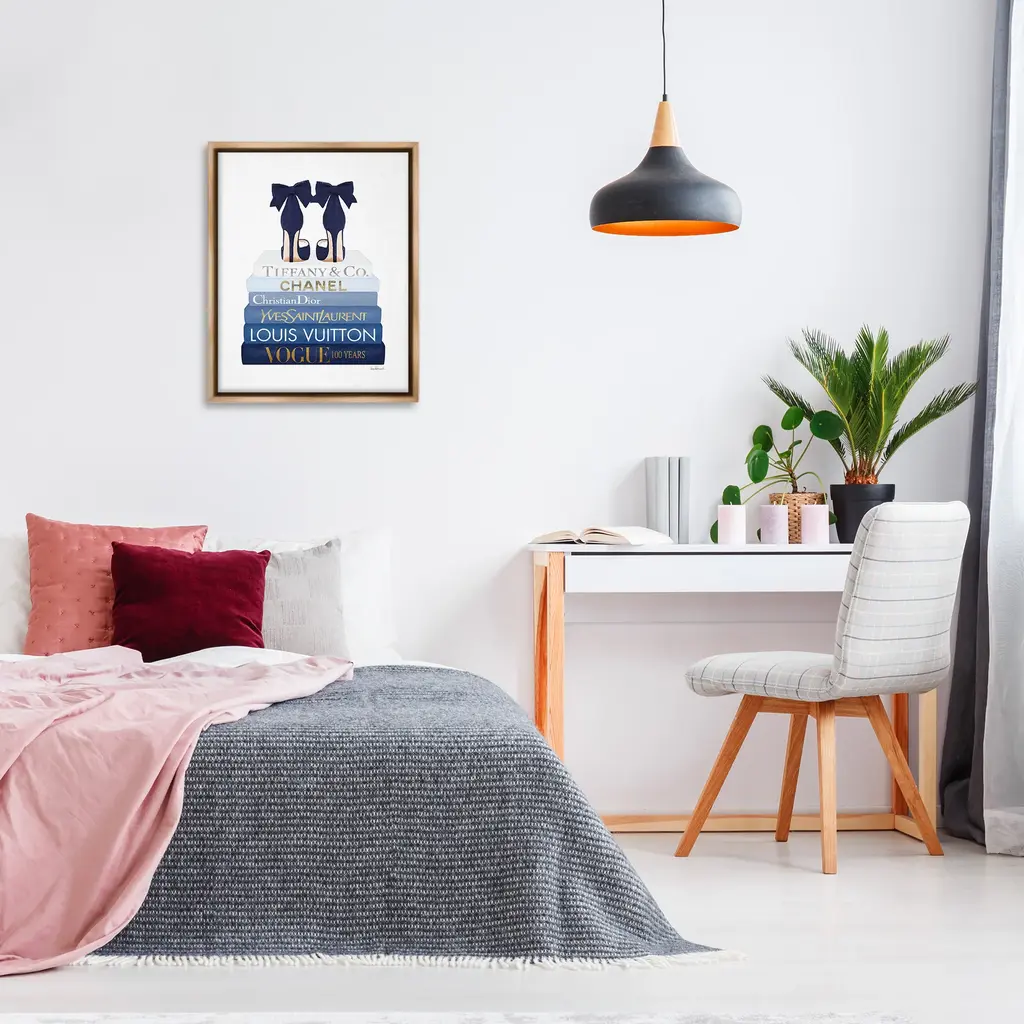Elevate your home or office to the next level with Stupell Framed Floating Canvas Wall Art. Our premium hand-stretched canvas is mounted securely into a sturdy lightweight frame. The museum-style gap between the wrapped canvas and the box frame gives the illusion of floating artwork. Stupell Wall Art is made in the USA.Features: Dimensions: 17 x 1.7 x 21 Frame, 16 x 1.5 x 20 Canvas ArtFloating Frame Canvas Products are available in sizes 17"x21" and 25"x31". All Floating Frame Canvas Products have a 1.7" Depth.Wall Art is Ready to Hang with Hardware Free Hanging. No Installation required. For Easy Set Up Lean or Layer Artwork on Shelf or Against Wall. Artwork is Permently Fixed into the Frame.Our elevated 1.7" Thick Floating Frame is the perfect complement to our canvas style Wall Art. We use only the highest quality inks in house with industry leading printing solutions. Canvas is hand stretched over a durable wood foundation and then mounted securly into a Modern Box Frame. Made in the USA.Artwork Relates To: Glam, Fashion, Bookstack, Heels, ShoesDesign by Amanda Greenwood