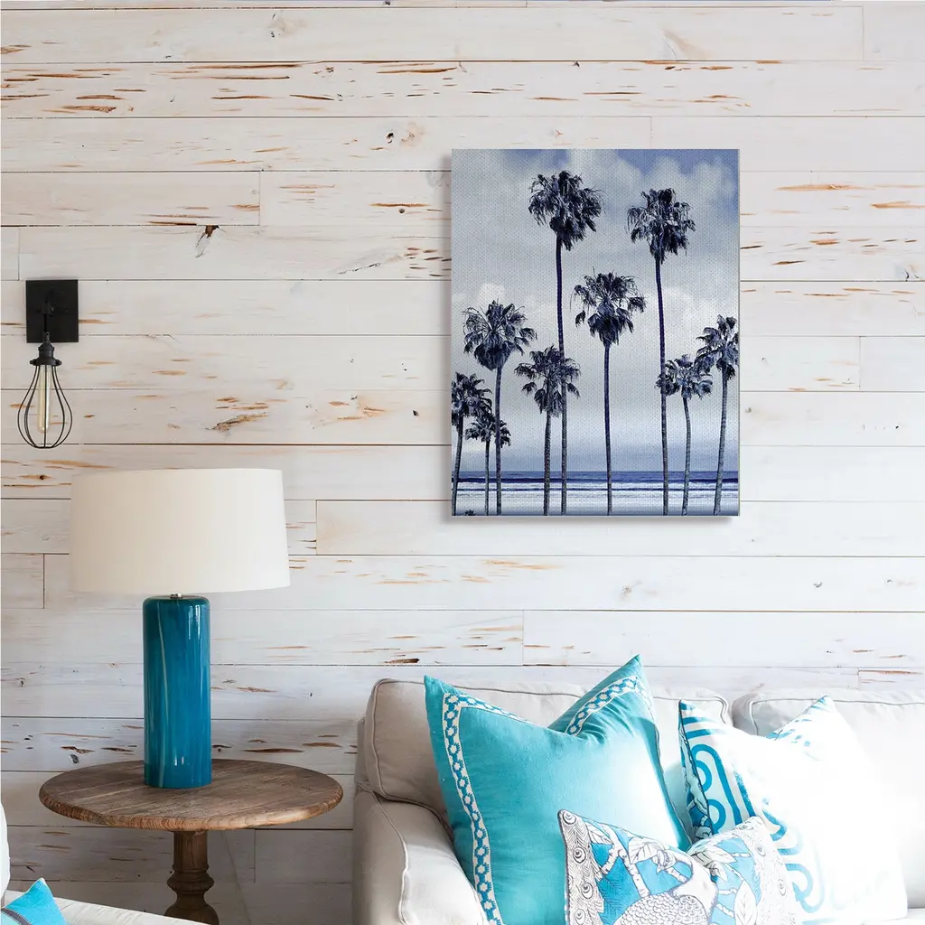 Stupell Navy Blue Palm Trees On Coastline Monochromatic Canvas Wall Art - 16 X 20
