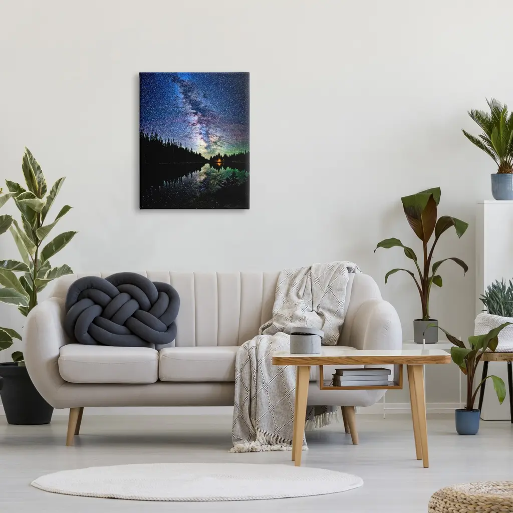 We create our stretched canvas to the highest standards. Using only the highest quality inks and canvas on Mimaki printers, we hand-cut and stretch each piece over a 1.5-inch thick wooden frame for hanging. As a result, the art comes ready to hang on the sturdy ledge with no installation required. Stupell Wall Art is made in the USA.Features: Dimensions: 16 x 1.5 x 20 InchesStretched Canvas Sizes Include Standard: 16 x 1.5 x 20 Large: 20 x 1.5 x 30 X-Large: 30 x 1.5 x 40 Oversized: 36 x 1.5 x 48Wall Art is Ready to Hang with Hardware Free Hanging. No installation required. For Easy Set Up Lean or Layer Artwork on Shelf or Against Wall.Our stretched canvas is created with the highest standards. We use only the highest quality inks and canvas on our in house Mimaki printers, and then hand cut and stretch each piece over a 1.5 inch thick wooden frame for hanging. Made In USA.Artwork Relates To: Nature, Night, Outdoors, Sky, Aurora, Northern Lights, Nature, LakeDesign by Lena Owens