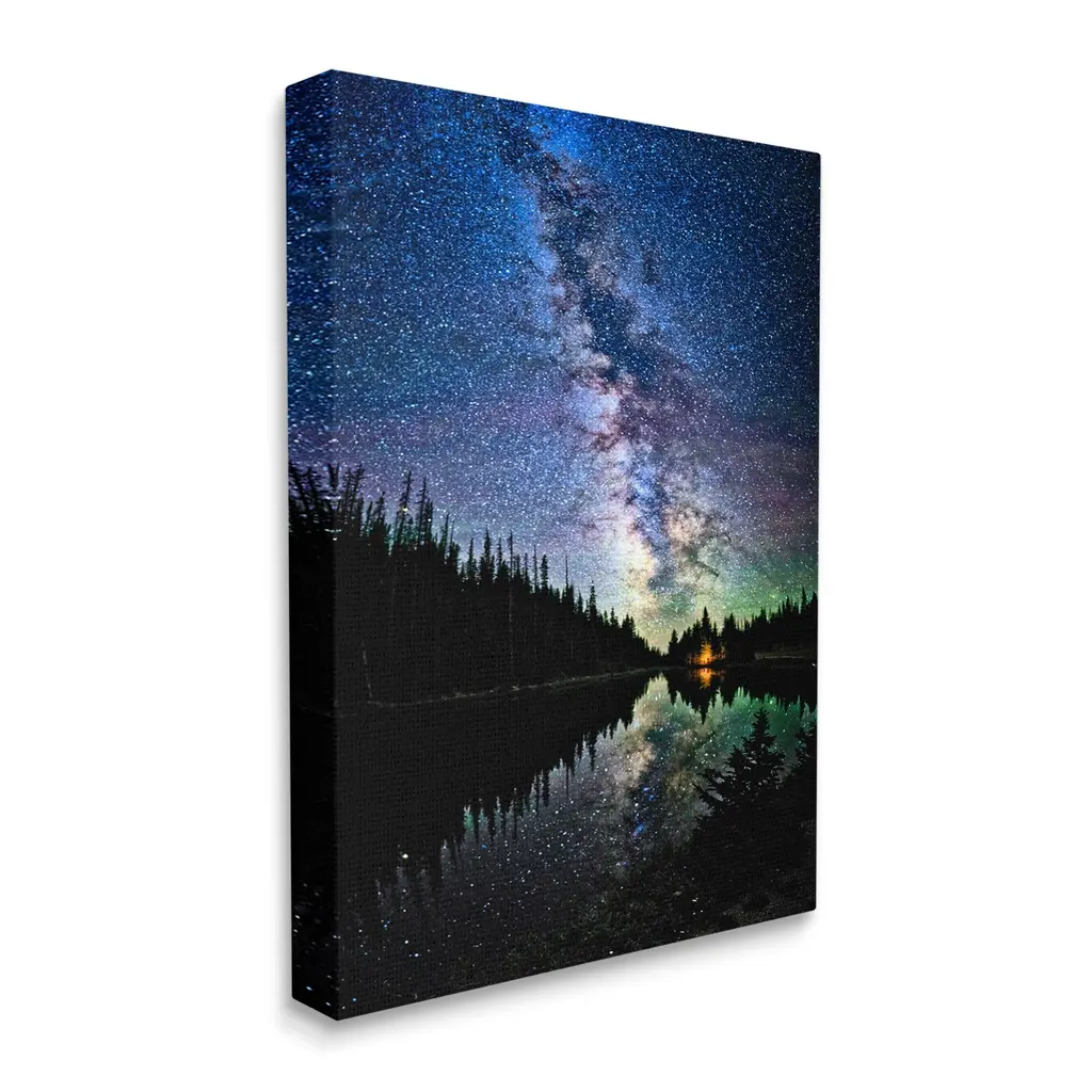 We create our stretched canvas to the highest standards. Using only the highest quality inks and canvas on Mimaki printers, we hand-cut and stretch each piece over a 1.5-inch thick wooden frame for hanging. As a result, the art comes ready to hang on the sturdy ledge with no installation required. Stupell Wall Art is made in the USA.Features: Dimensions: 16 x 1.5 x 20 InchesStretched Canvas Sizes Include Standard: 16 x 1.5 x 20 Large: 20 x 1.5 x 30 X-Large: 30 x 1.5 x 40 Oversized: 36 x 1.5 x 48Wall Art is Ready to Hang with Hardware Free Hanging. No installation required. For Easy Set Up Lean or Layer Artwork on Shelf or Against Wall.Our stretched canvas is created with the highest standards. We use only the highest quality inks and canvas on our in house Mimaki printers, and then hand cut and stretch each piece over a 1.5 inch thick wooden frame for hanging. Made In USA.Artwork Relates To: Nature, Night, Outdoors, Sky, Aurora, Northern Lights, Nature, LakeDesign by Lena Owens