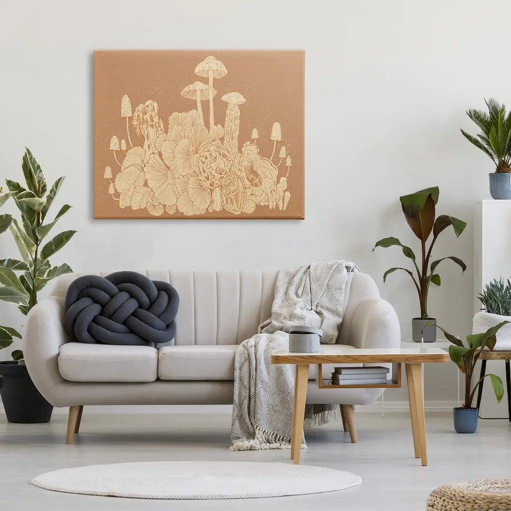 We create our stretched canvas to the highest standards. Using only the highest quality inks and canvas on Mimaki printers, we hand-cut and stretch each piece over a 1.5-inch thick wooden frame for hanging. As a result, the art comes ready to hang on the sturdy ledge with no installation required. Stupell Wall Art is made in the USA.Features: Dimensions: 20 x 1.5 x 16 InchesStretched Canvas Sizes Include Standard: 20 x 1.5 x 16 Large: 30 x 1.5 x 20 X-Large: 40 x 1.5 x 30 Oversized: 48 x 1.5 x 36Wall Art is Ready to Hang - No Installation or Hardware Needed. For Easy Set Up Lean or Layer Artwork on Shelf or Against Wall.Our stretched canvas is created with the highest standards. We use only the highest quality inks and canvas on our in house Mimaki printers, and then hand cut and stretch each piece over a 1.5 inch thick wooden frame for hanging. Made In USA.Artwork Relates To: Fungus, Plant, Agaric, Mushroom, Botanical, Woodland, NatureDesign by Ziwei Li