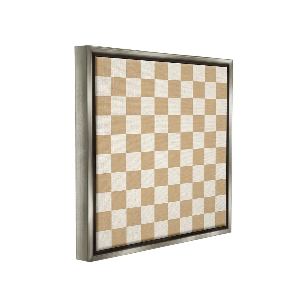 Elevate your home or office to the next level with Stupell Framed Floating Canvas Wall Art. Our premium hand-stretched canvas is mounted securely into a sturdy lightweight frame. The museum-style gap between the wrapped canvas and the box frame gives the illusion of floating artwork. Stupell Wall Art is made in the USA.Features: Dimensions: 18 x 1.7 x 18 Frame, 17 x 1.5 x 17 Canvas ArtFloating Frame Canvas Products are available in sizes 18"x18" and 25"x25". All Floating Frame Canvas Products have a 1.7" Depth.Wall Art is Ready to Hang with Hardware Free Hanging. No Installation required. For Easy Set Up Lean or Layer Artwork on Shelf or Against Wall. Artwork is Permently Fixed into the Frame.Our elevated 1.7" Thick Floating Frame is the perfect complement to our canvas style Wall Art. We use only the highest quality inks in house with industry leading printing solutions. Canvas is hand stretched over a durable wood foundation and then mounted securly into a Modern Box Frame. Made in the USA.Artwork Relates To: Pattern, Checkered, Neutral, Boho, ModernDesign by Carrie Cantwell