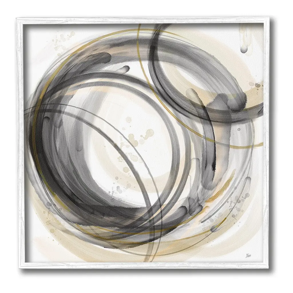 Elevate your home or office to the next level with Stupell Framed Floating Canvas Wall Art. Our premium hand-stretched canvas is mounted securely into a sturdy lightweight frame. The museum-style gap between the wrapped canvas and the box frame gives the illusion of floating artwork. Stupell Wall Art is made in the USA.Features: Dimensions: 18 x 1.7 x 18 Frame, 17 x 1.5 x 17 Canvas ArtFloating Frame Canvas Products are available in sizes 18"x18" and 25"x25". All Floating Frame Canvas Products have a 1.7" Depth.Wall Art is Ready to Hang with Hardware Free Hanging. No Installation required. For Easy Set Up Lean or Layer Artwork on Shelf or Against Wall. Artwork is Permently Fixed into the Frame.Our elevated 1.7" Thick Floating Frame is the perfect complement to our canvas style Wall Art. We use only the highest quality inks in house with industry leading printing solutions. Canvas is hand stretched over a durable wood foundation and then mounted securly into a Modern Box Frame. Made in the USA.Artwork Relates To: Modern, Abstract, Geometric, Circle, Contemporary, Pattern, NeutralDesign by Nan