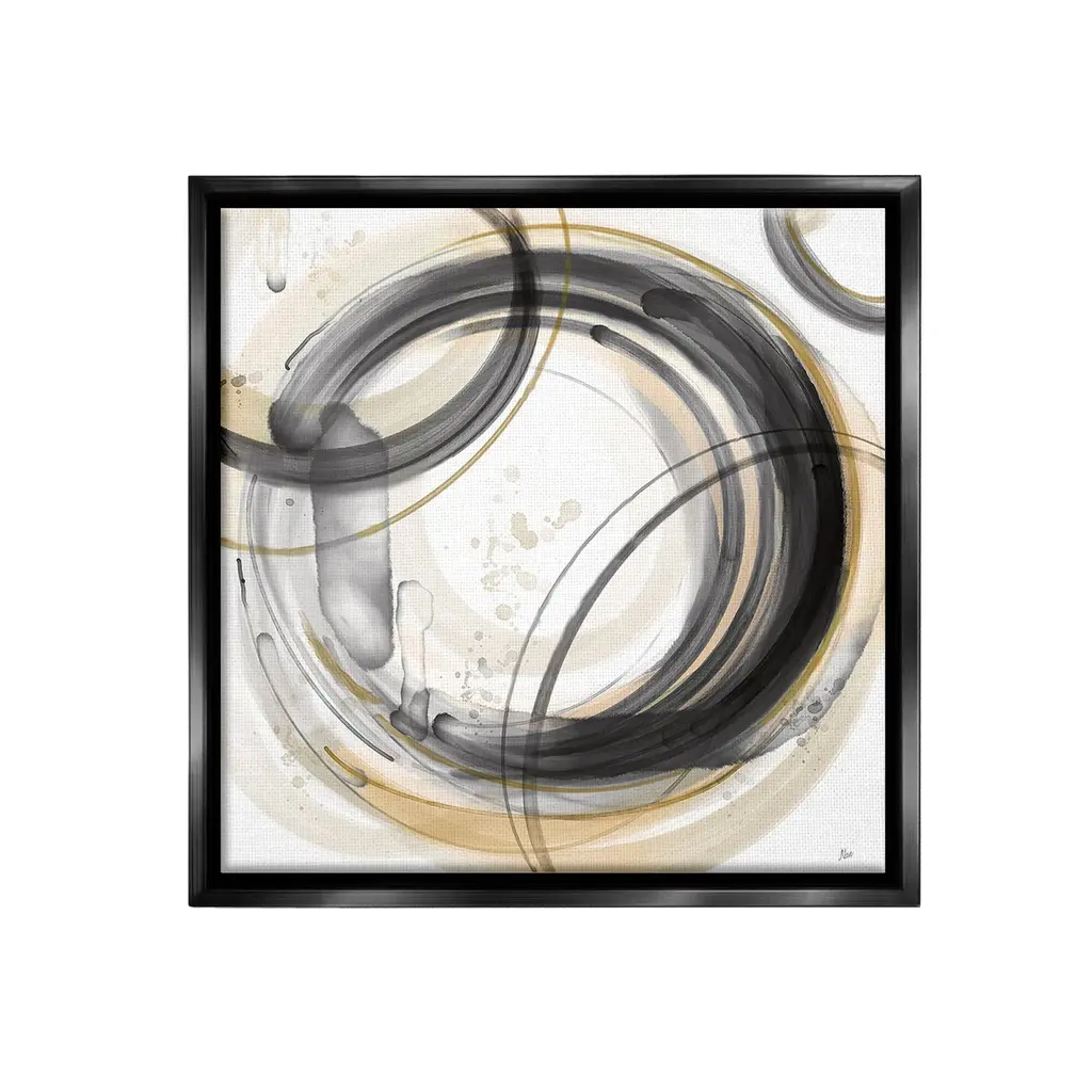 Stupell Neutral Circular Abstract Framed Floater Canvas Wall Art Design By Nan - 25 X 25 - Black