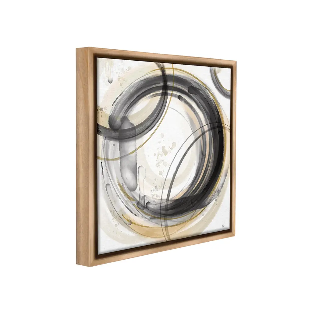 Elevate your home or office to the next level with Stupell Framed Floating Canvas Wall Art. Our premium hand-stretched canvas is mounted securely into a sturdy lightweight frame. The museum-style gap between the wrapped canvas and the box frame gives the illusion of floating artwork. Stupell Wall Art is made in the USA.Features: Dimensions: 18 x 1.7 x 18 Frame, 17 x 1.5 x 17 Canvas ArtFloating Frame Canvas Products are available in sizes 18"x18" and 25"x25". All Floating Frame Canvas Products have a 1.7" Depth.Wall Art is Ready to Hang with Hardware Free Hanging. No Installation required. For Easy Set Up Lean or Layer Artwork on Shelf or Against Wall. Artwork is Permently Fixed into the Frame.Our elevated 1.7" Thick Floating Frame is the perfect complement to our canvas style Wall Art. We use only the highest quality inks in house with industry leading printing solutions. Canvas is hand stretched over a durable wood foundation and then mounted securly into a Modern Box Frame. Made in the USA.Artwork Relates To: Modern, Abstract, Geometric, Circle, Contemporary, Pattern, NeutralDesign by Nan