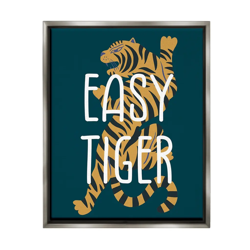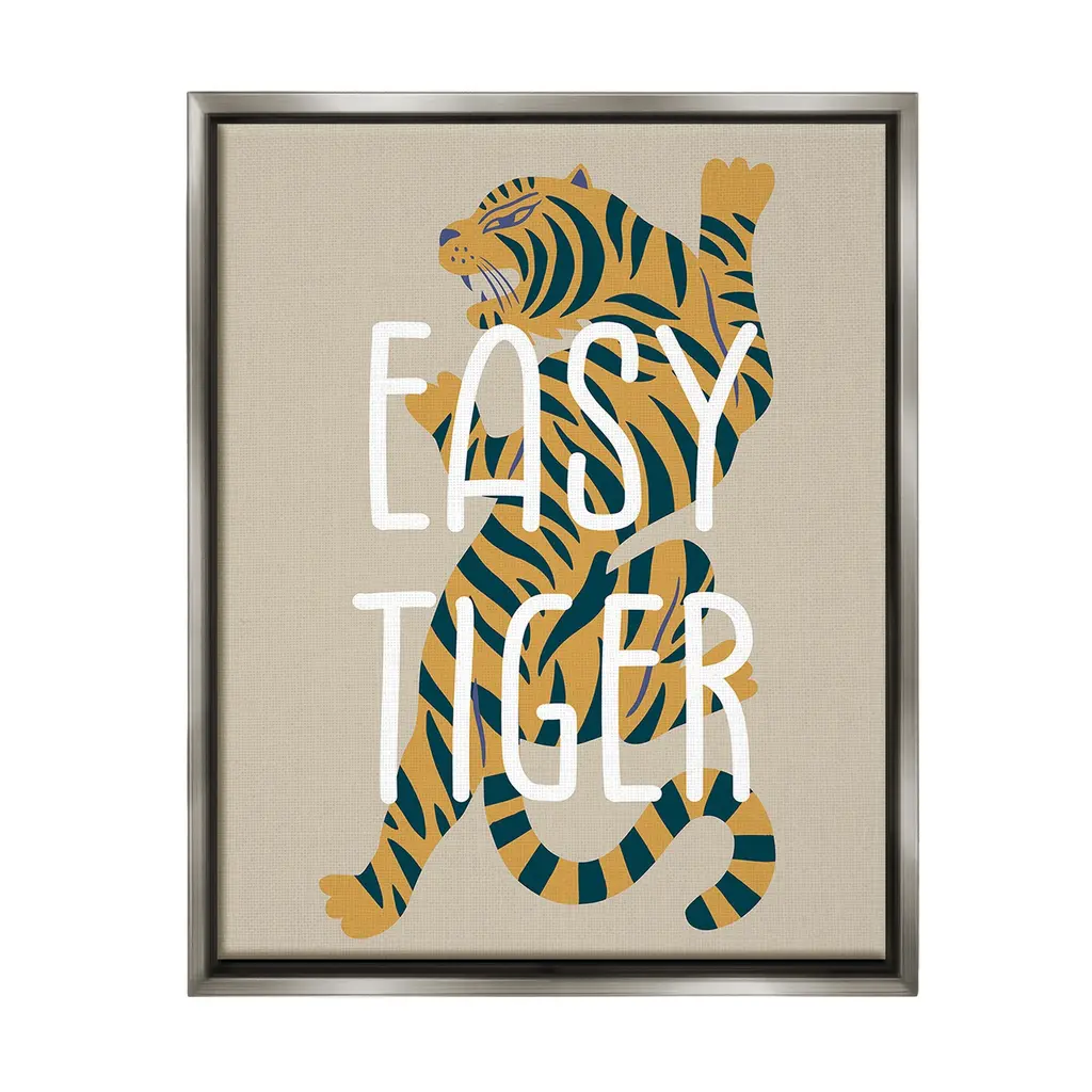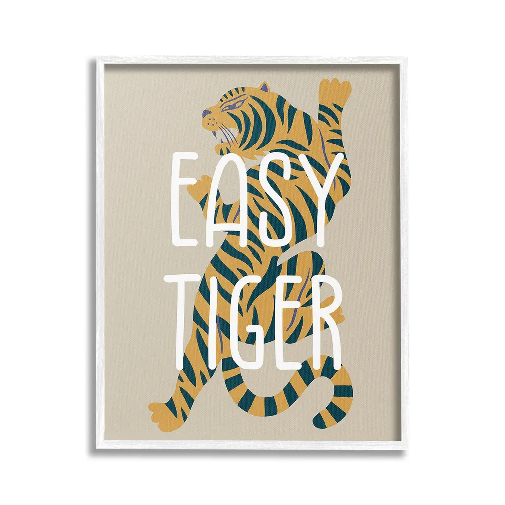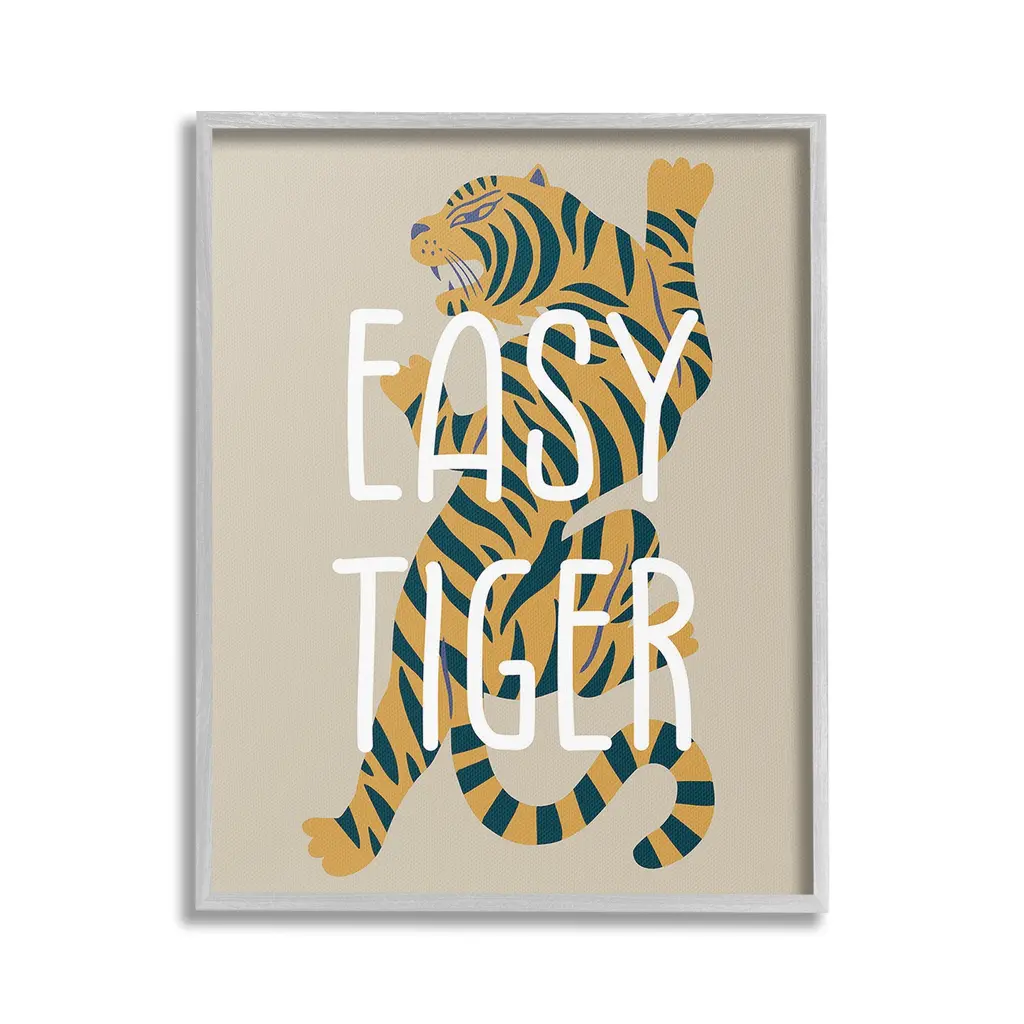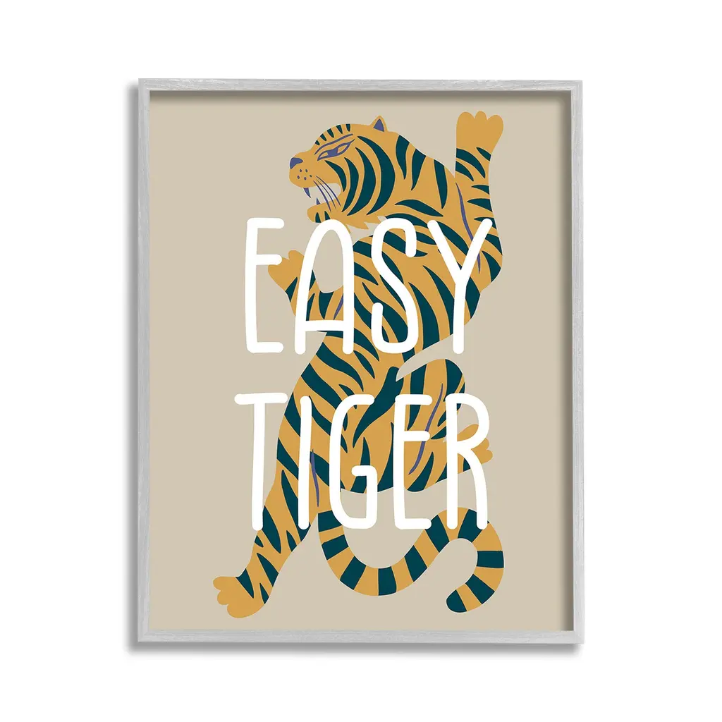 Add dimension to any room with our textured Framed Giclee Artwork. Our framed artwork is securely mounted into a 1.5-inch thick wood grain frame and ready to hang. Frames are available in three alluring styles: black, gray farmhouse and white. In addition, you should check out our oversized options if you want a statement piece. Stupell Wall Art is made in the USA.Features: Dimensions: 11 x 1.5 x 14 FramedFramed Giclee Products are available in the sizes 11"x14", 16"x20" or 24"x30". All Framed Giclee Products have a 1.5" Depth. Wall Art is Ready to Hang with Hardware Free Hanging. No installation required. For Easy Set Up Lean or Layer Artwork on Shelf or Against Wall.Our giclée prints are carefully mounted on a durable MDF backing, and then perfectly finished in a 1.5 inch thick woodgrain frame. Mounted frame colors include black, gray farmhouse and white. Made In USA.Artwork Relates To: Animal, Wildlife, Mammal, Phrase, Jungle, Tiger, Easy TigerDesign by Lil' Rue