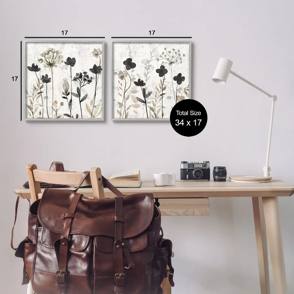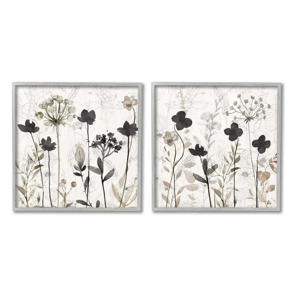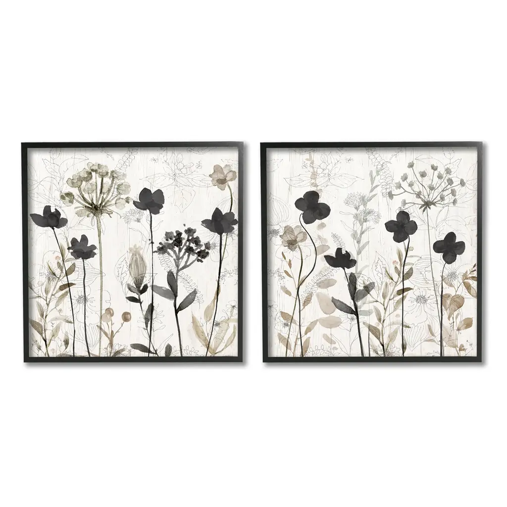 Fill any space in your home or office with our Framed Wall Art Sets. Our framed artwork is securely mounted into a 1.5-inch thick wood grain frame and ready to hang. Frames are available in three alluring styles: black, gray farmhouse and white. Stupell Wall Art is made in the USA.Features: Dimensions: 2 Piece Set, Each Panel is 12 x 1.5 x 12 FramedFramed Giclee Set Sizes Include Standard: 2pc, Each is 12 x 1.5 x 12 Large: 2pc, Each is 17 x 1.5 x 17 Oversized: 2pc, Each is 24 x 1.5 x 24Wall Art is Ready to Hang - No Installation or Hardware Needed. For Easy Set Up Lean or Layer Artwork on Shelf or Against Wall.Curated Wall Art Sets make it easy for you complete the theme for any room. Our giclée prints are carefully mounted on a durable MDF backing, and then perfectly finished in a 1.5 inch thick woodgrain frame. Mounted frame colors include black, gray farmhouse and white. Made In USA.Artwork Relates To: Flower, Floral, Garden, Beige, Boho, Blossom, AbstractDesign by Livi Finn