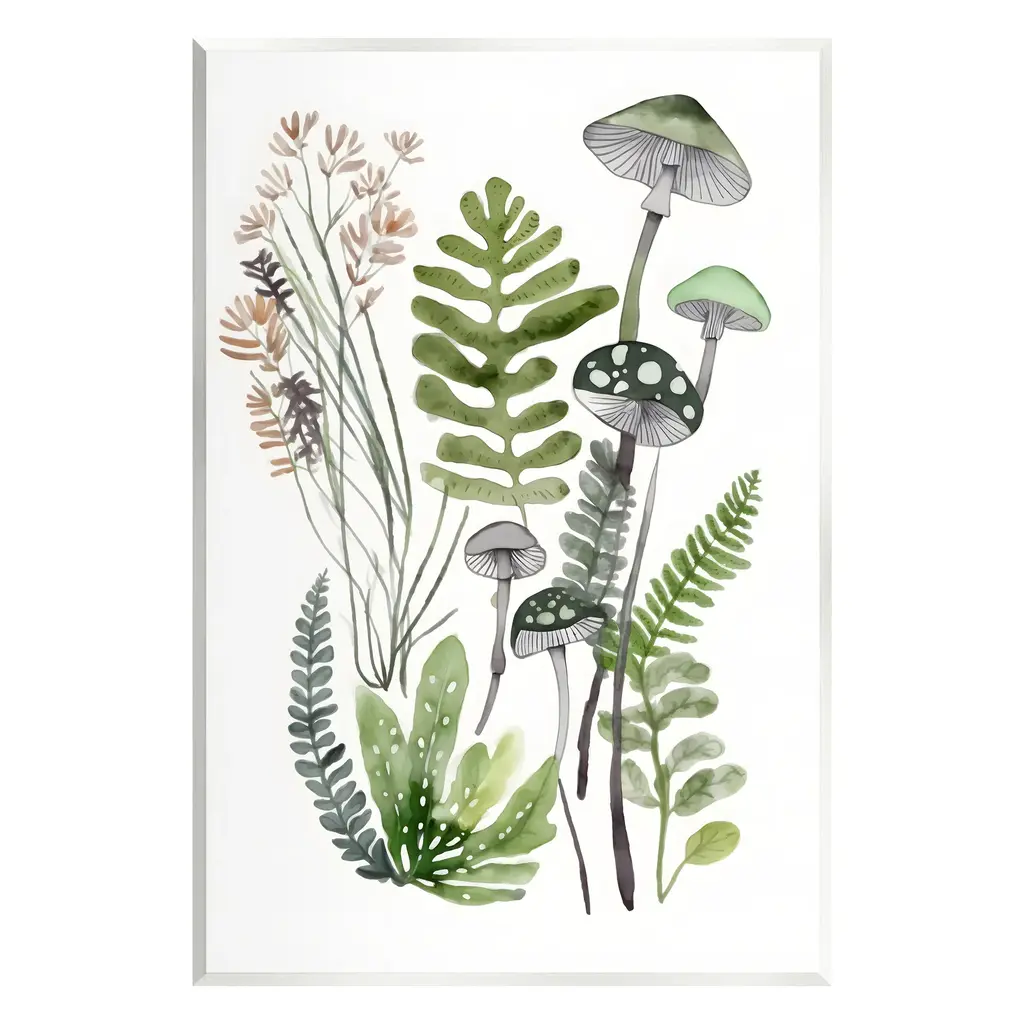 Our wall plaques start as high-quality lithograph prints mounted on durable 0.5-inch thick MDF wood. Each piece is hand finished and comes with a fresh layer of white foil on the sides to give it a crisp, clean look. Plaques arrive ready to hang without installation and come with removable plastic corners to keep them from damage in transit. Wall Art is made in the USA.Features: Dimensions: 10 x 0.5 x 15 InchesWall Plaque Sizes Include Standard: 10 x 0.5 x 15 Oversized: 13 x 0.5 x 19Wall Art is Ready to Hang with Hardware Free Hanging. No installation required. For Easy Set Up Lean or Layer Artwork on Shelf or Against Wall.All of our wall plaques start off as high quality lithograph prints that are then mounted on durable 0.5 inch thick MDF wood. Each piece is hand finished and comes with a fresh layer of foil on the sides to give it a crisp clean look. Made In USA.Artwork Relates To: Leaf, Plant, Fern, Fungus, Pattern, Agaric, Mushroom, Herbs, BotanicalDesign by Petals Prints Design