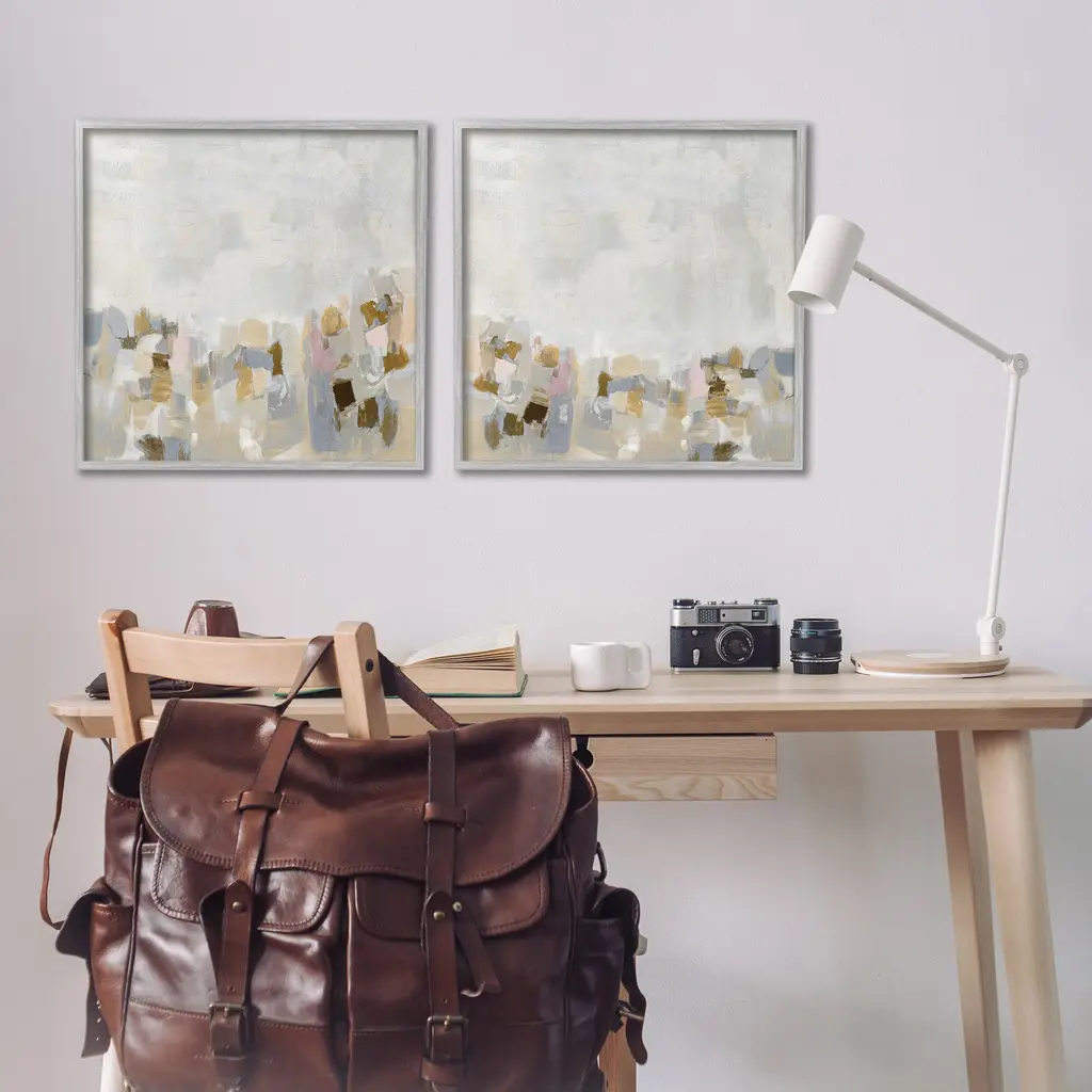 Stupell Neutral Geometric Horizon Framed Giclee Art Design By Rachel Springer (Set Of 2) - 24 X 24 - Grey