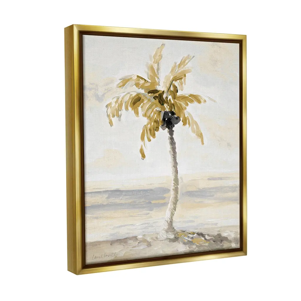 Stupell Neutral Lone Palm Tree Framed Floater Canvas Wall Art Design By Lanie Loreth - 25 X 31 - Gold