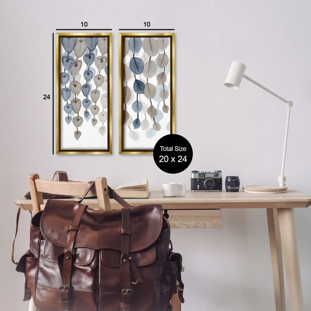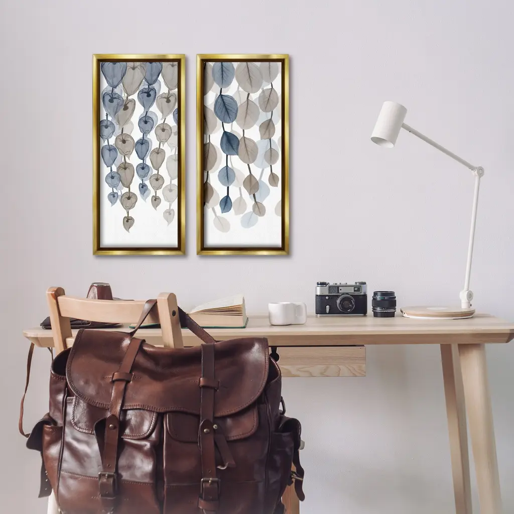 Stupell Neutral Opaque Cascading Leaves Framed Floater Canvas Wall Art Design By Albert Koetsier (Set Of 2) - 11 X 25 - Gold