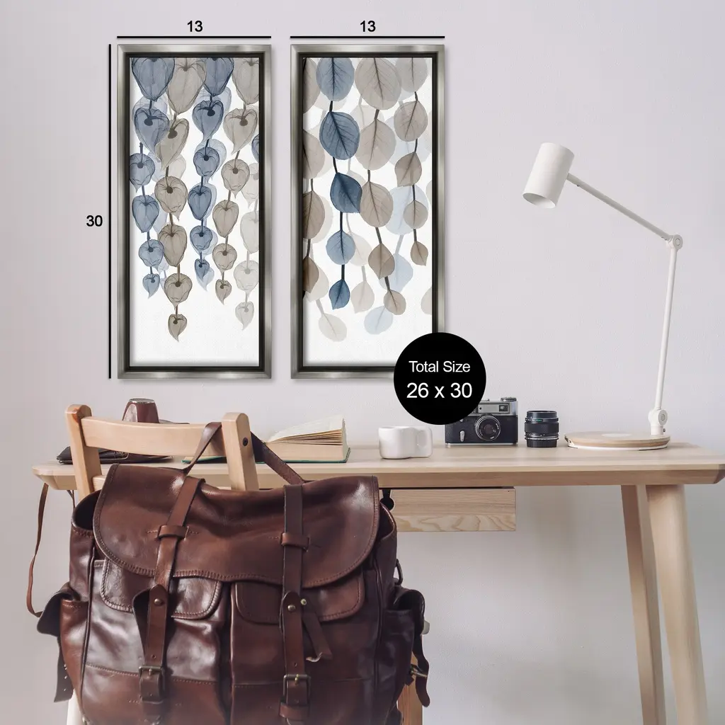 Stupell Neutral Opaque Cascading Leaves Framed Floater Canvas Wall Art Design By Albert Koetsier (Set Of 2) - 14 X 31 - Grey
