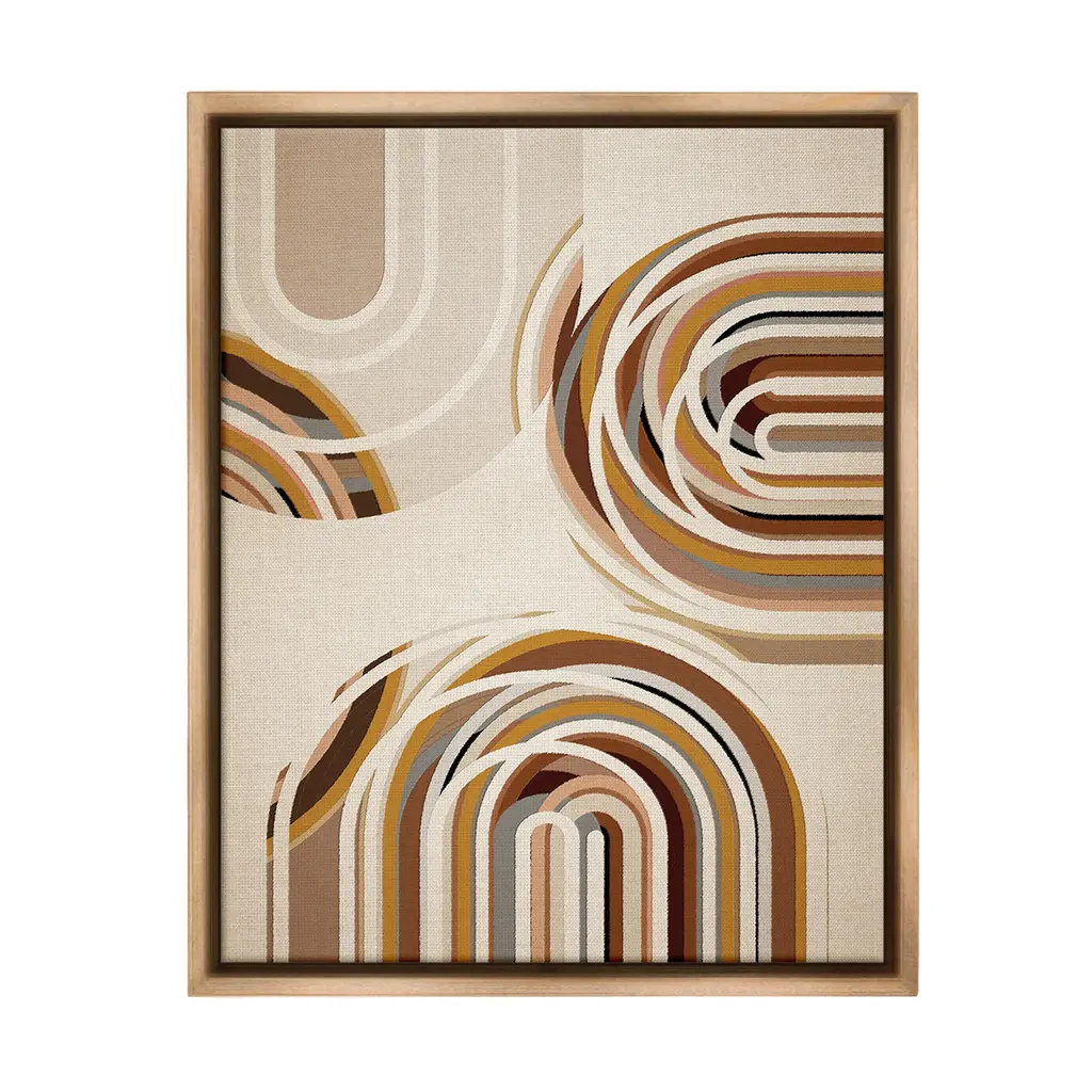 Elevate your home or office to the next level with Stupell Framed Floating Canvas Wall Art. Our premium hand-stretched canvas is mounted securely into a sturdy lightweight frame. The museum-style gap between the wrapped canvas and the box frame gives the illusion of floating artwork. Stupell Wall Art is made in the USA.Features: Dimensions: 17 x 1.7 x 21 Frame, 16 x 1.5 x 20 Canvas ArtFloating Frame Canvas Products are available in sizes 17"x21" and 25"x31". All Floating Frame Canvas Products have a 1.7" Depth.Wall Art is Ready to Hang with Hardware Free Hanging. No Installation required. For Easy Set Up Lean or Layer Artwork on Shelf or Against Wall. Artwork is Permently Fixed into the Frame.Our elevated 1.7" Thick Floating Frame is the perfect complement to our canvas style Wall Art. We use only the highest quality inks in house with industry leading printing solutions. Canvas is hand stretched over a durable wood foundation and then mounted securly into a Modern Box Frame. Made in the USA.Artwork Relates To: Abstract, Neutral, Desert, Southwestern, Beige, Brown, Pattern, ArchDesign by Amber Sterling