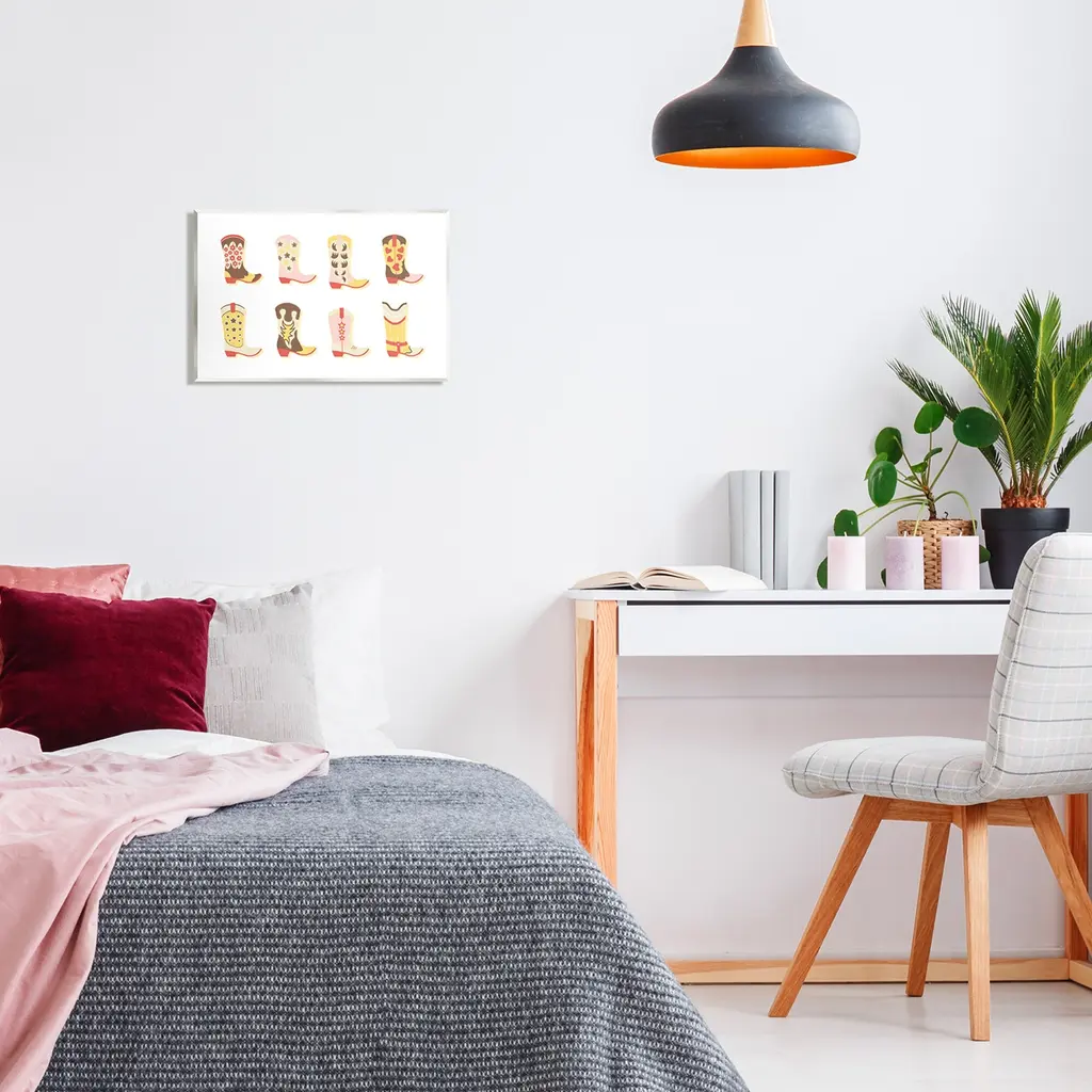 Our wall plaques start as high-quality lithograph prints mounted on durable 0.5-inch thick MDF wood. Each piece is hand finished and comes with a fresh layer of white foil on the sides to give it a crisp, clean look. Plaques arrive ready to hang without installation and come with removable plastic corners to keep them from damage in transit. Wall Art is made in the USA.Features: Dimensions: 15 x 0.5 x 10 InchesWall Plaque Sizes Include Standard: 15 x 0.5 x 10 Oversized: 19 x 0.5 x 13Wall Art is Ready to Hang with Hardware Free Hanging. No installation required. For Easy Set Up Lean or Layer Artwork on Shelf or Against Wall.All of our wall plaques start off as high quality lithograph prints that are then mounted on durable 0.5 inch thick MDF wood. Each piece is hand finished and comes with a fresh layer of foil on the sides to give it a crisp clean look. Made In USA.Artwork Relates To: Shoe, Boot, Cowboy Boot, PatternDesign by Martina Pavlova