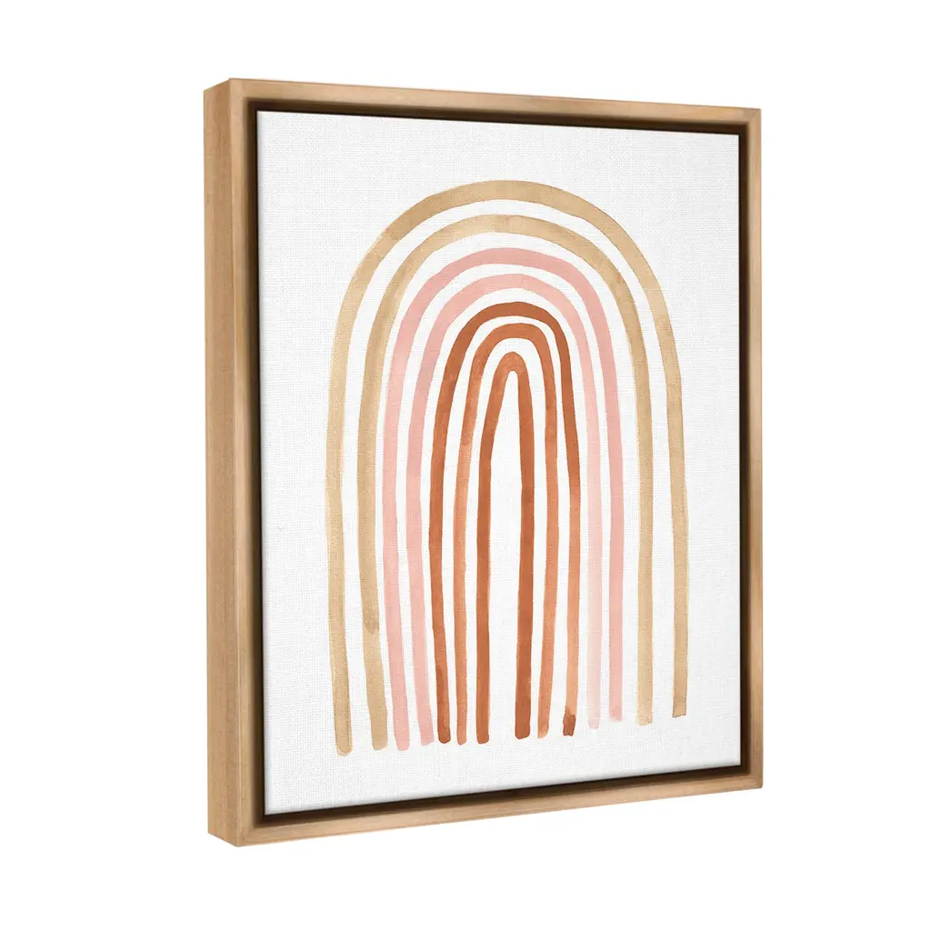 Elevate your home or office to the next level with Stupell Framed Floating Canvas Wall Art. Our premium hand-stretched canvas is mounted securely into a sturdy lightweight frame. The museum-style gap between the wrapped canvas and the box frame gives the illusion of floating artwork. Stupell Wall Art is made in the USA.Features: Dimensions: 17 x 1.7 x 21 Frame, 16 x 1.5 x 20 Canvas ArtFloating Frame Canvas Products are available in sizes 17"x21" and 25"x31". All Floating Frame Canvas Products have a 1.7" Depth.Wall Art is Ready to Hang with Hardware Free Hanging. No Installation required. For Easy Set Up Lean or Layer Artwork on Shelf or Against Wall. Artwork is Permently Fixed into the Frame.Our elevated 1.7" Thick Floating Frame is the perfect complement to our canvas style Wall Art. We use only the highest quality inks in house with industry leading printing solutions. Canvas is hand stretched over a durable wood foundation and then mounted securly into a Modern Box Frame. Made in the USA.Artwork Relates To: Rainbow, Pattern, Boho, Abstract, Stripes, Arch, ShapeDesign by Emma Scarvey
