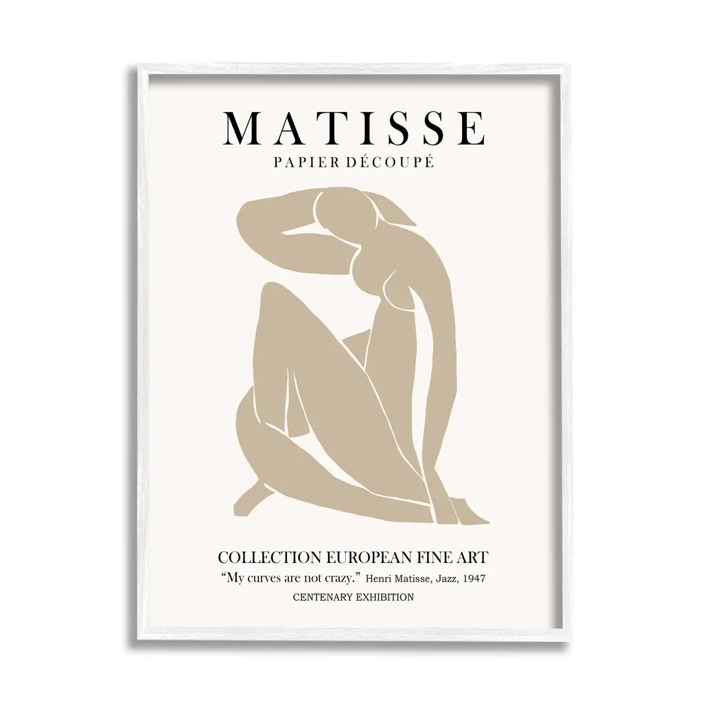 Stupell Neutral Silhouette Modern Woman Matisse Exhibition Text Framed Wall Art - Tan - 16 X 20 - Grey