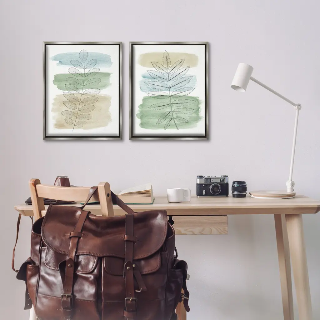 Elevate your home or office to the next level with Stupell Framed Floating Canvas Wall Art. Our premium hand-stretched canvas is mounted securely into a sturdy lightweight frame. The museum-style gap between the wrapped canvas and the box frame gives the illusion of floating artwork. Stupell Wall Art is made in the USA.Features: Dimensions: 2 Piece Set, Each Frame is 17 x 1.7 x 21Two Piece Floater Framed Canvas are available as 17x21 or 25x31 Panels. All Floater Frame Products have a 1.7" Depth.Wall Art is Ready to Hang with Hardware Free Hanging. No Installation required. For Easy Set Up Lean or Layer Artwork on Shelf or Against Wall. Artwork is Permently Fixed into the Frame.Our elevated 1.7" Thick Floating Frame is the perfect complement to our canvas style Wall Art. We use only the highest quality inks in house with industry leading printing solutions. Canvas is hand stretched over a durable wood foundation and then mounted securly into a Modern Box Frame. Made in the USA.Artwork Relates To: Abstract, Modern, Plant, Leaf, Fern, WoodlandDesign by Alonzo Saunders