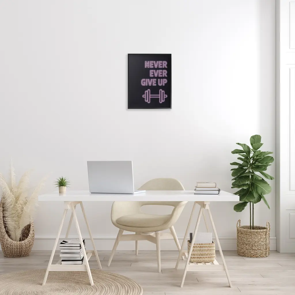 Add dimension to any room with our textured Framed Giclee Artwork. Our framed artwork is securely mounted into a 1.5-inch thick wood grain frame and ready to hang. Frames are available in three alluring styles: black, gray farmhouse and white. In addition, you should check out our oversized options if you want a statement piece. Stupell Wall Art is made in the USA.Features: Dimensions: 11 x 1.5 x 14 FramedFramed Giclee Products are available in the sizes 11"x14", 16"x20" or 24"x30". All Framed Giclee Products have a 1.5" Depth. Wall Art is Ready to Hang with Hardware Free Hanging. No installation required. For Easy Set Up Lean or Layer Artwork on Shelf or Against Wall.Our giclée prints are carefully mounted on a durable MDF backing, and then perfectly finished in a 1.5 inch thick woodgrain frame. Mounted frame colors include black, gray farmhouse and white. Made In USA.Artwork Relates To: Exercise, Fitness, Workout, Weightlifting, Neon, Inspirational, Motivational, Never Ever Give UpDesign by Victoria Barnes