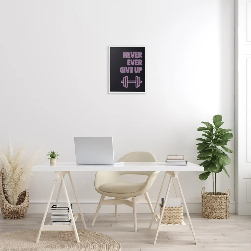 Add dimension to any room with our textured Framed Giclee Artwork. Our framed artwork is securely mounted into a 1.5-inch thick wood grain frame and ready to hang. Frames are available in three alluring styles: black, gray farmhouse and white. In addition, you should check out our oversized options if you want a statement piece. Stupell Wall Art is made in the USA.Features: Dimensions: 11 x 1.5 x 14 FramedFramed Giclee Products are available in the sizes 11"x14", 16"x20" or 24"x30". All Framed Giclee Products have a 1.5" Depth. Wall Art is Ready to Hang with Hardware Free Hanging. No installation required. For Easy Set Up Lean or Layer Artwork on Shelf or Against Wall.Our giclée prints are carefully mounted on a durable MDF backing, and then perfectly finished in a 1.5 inch thick woodgrain frame. Mounted frame colors include black, gray farmhouse and white. Made In USA.Artwork Relates To: Exercise, Fitness, Workout, Weightlifting, Neon, Inspirational, Motivational, Never Ever Give UpDesign by Victoria Barnes