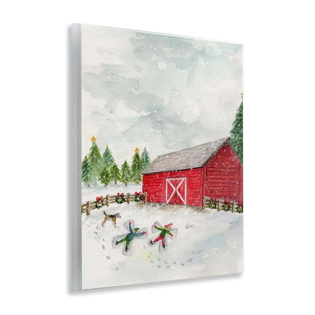 Our wall plaques start as high-quality lithograph prints mounted on durable 0.5-inch thick MDF wood. Each piece is hand finished and comes with a fresh layer of white foil on the sides to give it a crisp, clean look. Plaques arrive ready to hang without installation and come with removable plastic corners to keep them from damage in transit. Stupell Wall Art is made in the USA.Features: Dimensions: 11 x 0.5 x 14 InchesWall Art is Ready to Hang with Hardware Free Hanging. No installation required. For Easy Set Up Lean or Layer Artwork on Shelf or Against Wall.All of our wall plaques start off as high quality lithograph prints that are then mounted on durable 0.5 inch thick MDF wood. Each piece is hand finished and comes with a fresh layer of foil on the sides to give it a crisp clean look. Made In USA.Artwork Relates To: Country, Farm, Barn, Children, Fun, Winter, Snow, Holiday, Seasonal, ChristmasDesign by Melissa Hyatt