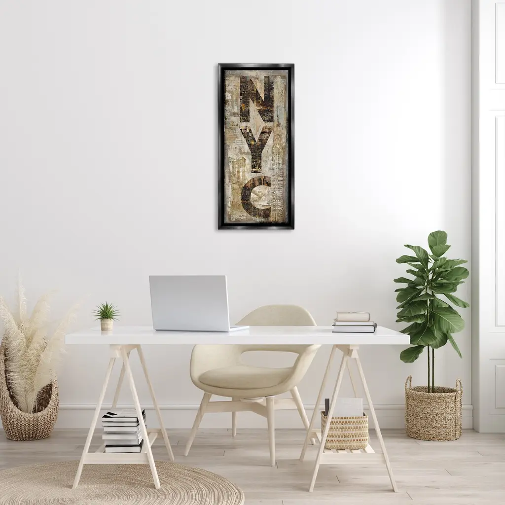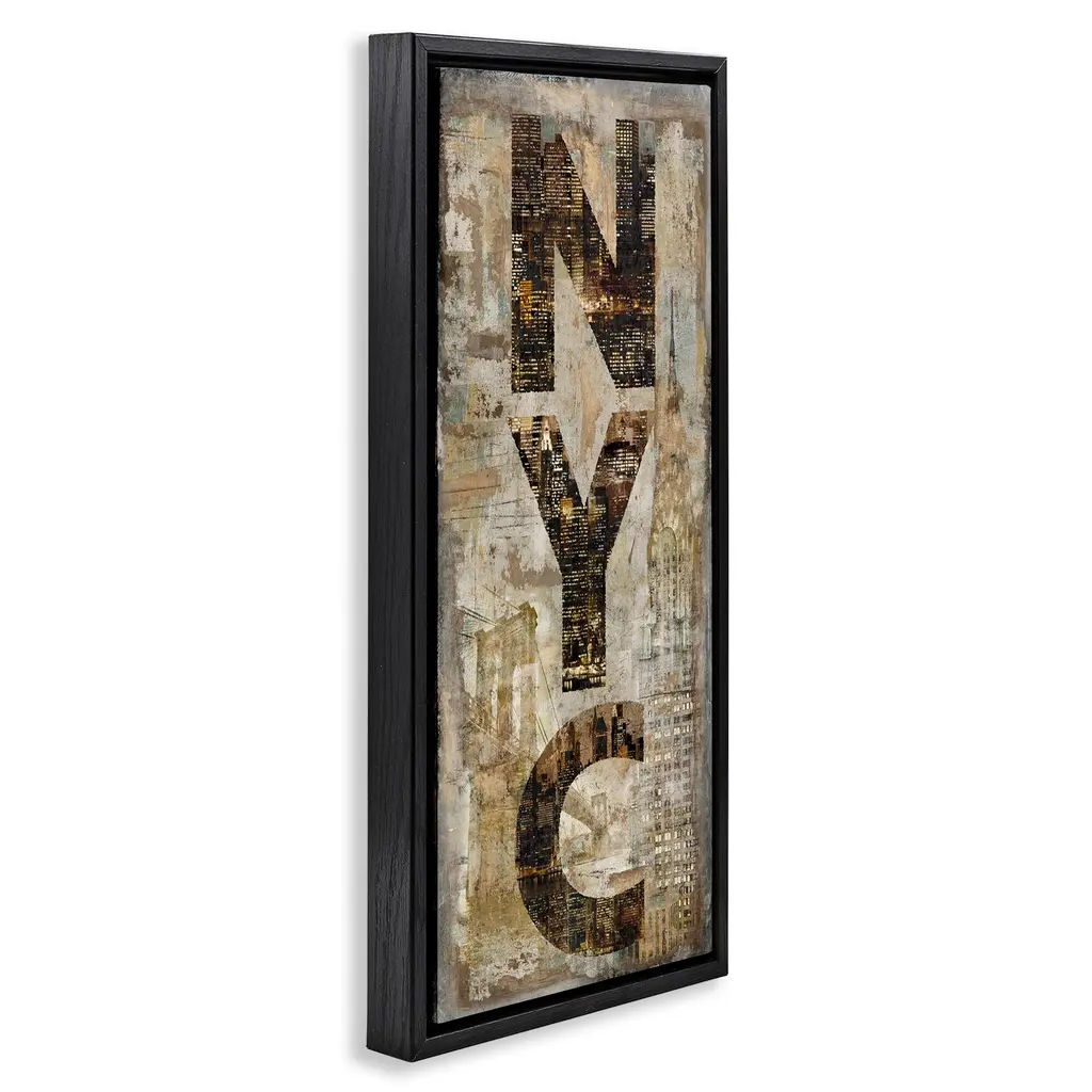 Elevate your home or office to the next level with Stupell Framed Floating Canvas Wall Art. Our premium hand-stretched canvas is mounted securely into a sturdy lightweight frame. The museum-style gap between the wrapped canvas and the box frame gives the illusion of floating artwork. Stupell Wall Art is made in the USA.Features: Dimensions: 11 x 1.7 x 25 Frame, 10 x 1.5 x 24 Canvas ArtFloating Frame Canvas Products are available in sizes 11"x25" and 14"x31". All Floating Frame Canvas Products have a 1.7" Depth.Wall Art is Ready to Hang with Hardware Free Hanging. No Installation required. For Easy Set Up Lean or Layer Artwork on Shelf or Against Wall. Artwork is Permently Fixed into the Frame.Our elevated 1.7" Thick Floating Frame is the perfect complement to our canvas style Wall Art. We use only the highest quality inks in house with industry leading printing solutions. Canvas is hand stretched over a durable wood foundation and then mounted securly into a Modern Box Frame. Made in the USA.Artwork Relates To: Rustic, Urban, Industrial, City, Letters, NYCDesign by Luke Wilson