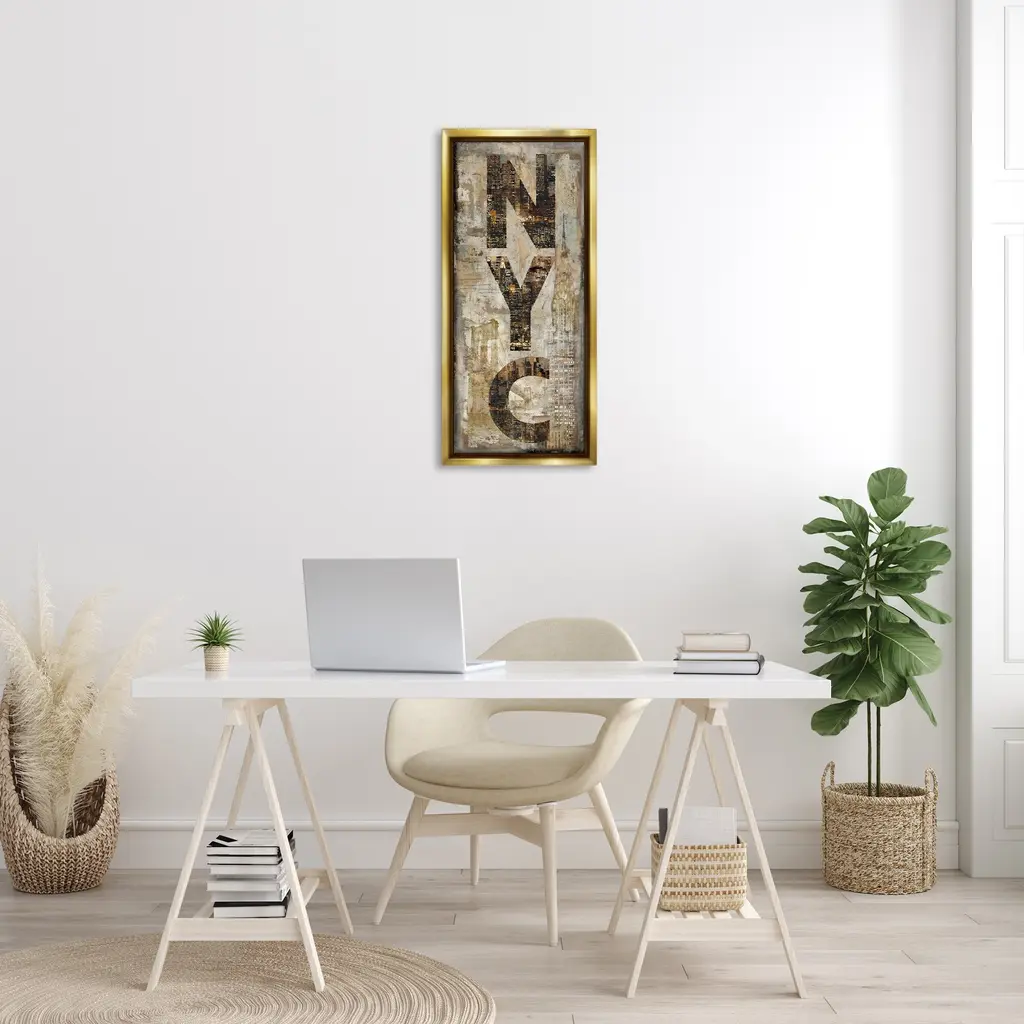 Elevate your home or office to the next level with Stupell Framed Floating Canvas Wall Art. Our premium hand-stretched canvas is mounted securely into a sturdy lightweight frame. The museum-style gap between the wrapped canvas and the box frame gives the illusion of floating artwork. Stupell Wall Art is made in the USA.Features: Dimensions: 11 x 1.7 x 25 Frame, 10 x 1.5 x 24 Canvas ArtFloating Frame Canvas Products are available in sizes 11"x25" and 14"x31". All Floating Frame Canvas Products have a 1.7" Depth.Wall Art is Ready to Hang with Hardware Free Hanging. No Installation required. For Easy Set Up Lean or Layer Artwork on Shelf or Against Wall. Artwork is Permently Fixed into the Frame.Our elevated 1.7" Thick Floating Frame is the perfect complement to our canvas style Wall Art. We use only the highest quality inks in house with industry leading printing solutions. Canvas is hand stretched over a durable wood foundation and then mounted securly into a Modern Box Frame. Made in the USA.Artwork Relates To: Rustic, Urban, Industrial, City, Letters, NYCDesign by Luke Wilson
