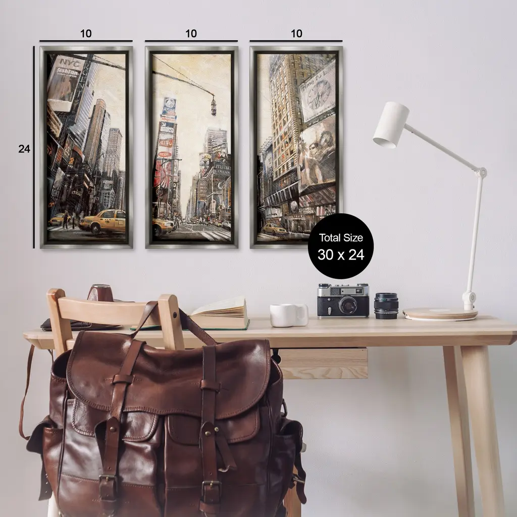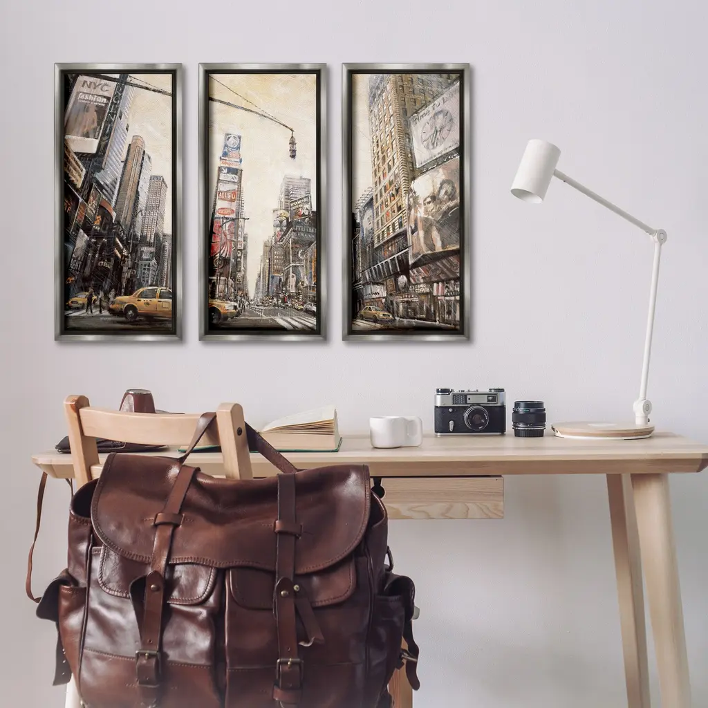 Elevate your home or office to the next level with Stupell Framed Floating Canvas Wall Art. Our premium hand-stretched canvas is mounted securely into a sturdy lightweight frame. The museum-style gap between the wrapped canvas and the box frame gives the illusion of floating artwork. Stupell Wall Art is made in the USA.Features: Dimensions: 3 Piece Set, Each Frame is 11 x 1.7 x 25Three Piece Floating Frame Canvas Products are available as 11"x25" or 14"x31" Panels. All Floating Frame Canvas Products have a 1.7" Depth.Wall Art is Ready to Hang with Hardware Free Hanging. No Installation required. For Easy Set Up Lean or Layer Artwork on Shelf or Against Wall. Artwork is Permently Fixed into the Frame.Our elevated 1.7" Thick Floating Frame is the perfect complement to our canvas style Wall Art. We use only the highest quality inks in house with industry leading printing solutions. Canvas is hand stretched over a durable wood foundation and then mounted securly into a Modern Box Frame. Made in the USA.Artwork Relates To: City, Cityscape, Industrial, Town, New York, Taxi, CarDesign by Matthew Daniels