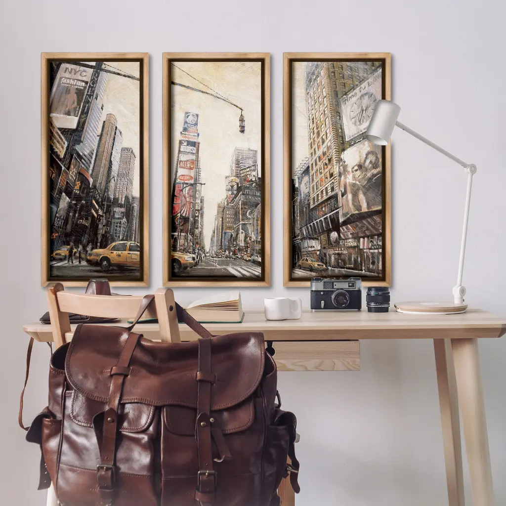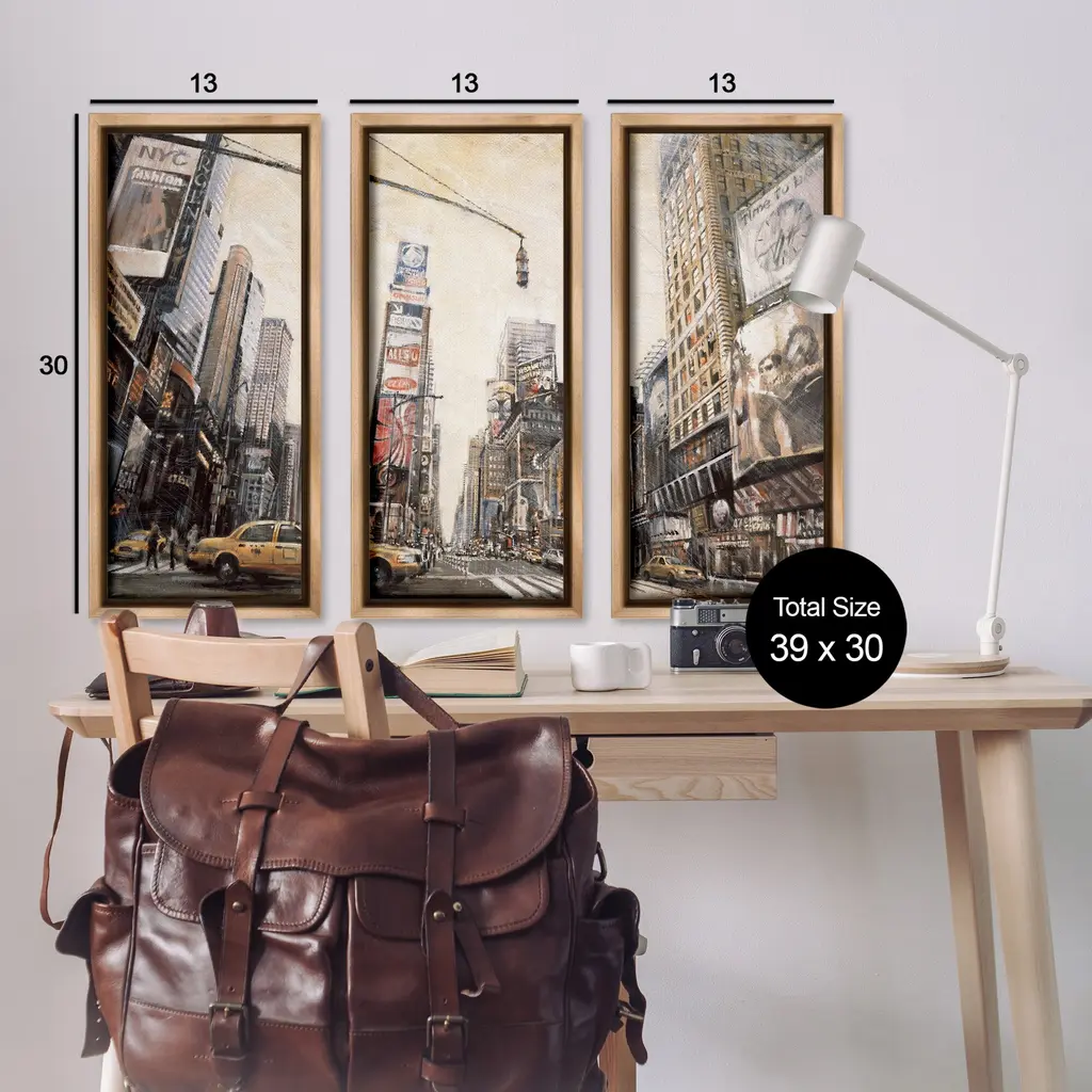 Elevate your home or office to the next level with Stupell Framed Floating Canvas Wall Art. Our premium hand-stretched canvas is mounted securely into a sturdy lightweight frame. The museum-style gap between the wrapped canvas and the box frame gives the illusion of floating artwork. Stupell Wall Art is made in the USA.Features: Dimensions: 3 Piece Set, Each Frame is 11 x 1.7 x 25Three Piece Floating Frame Canvas Products are available as 11"x25" or 14"x31" Panels. All Floating Frame Canvas Products have a 1.7" Depth.Wall Art is Ready to Hang with Hardware Free Hanging. No Installation required. For Easy Set Up Lean or Layer Artwork on Shelf or Against Wall. Artwork is Permently Fixed into the Frame.Our elevated 1.7" Thick Floating Frame is the perfect complement to our canvas style Wall Art. We use only the highest quality inks in house with industry leading printing solutions. Canvas is hand stretched over a durable wood foundation and then mounted securly into a Modern Box Frame. Made in the USA.Artwork Relates To: City, Cityscape, Industrial, Town, New York, Taxi, CarDesign by Matthew Daniels