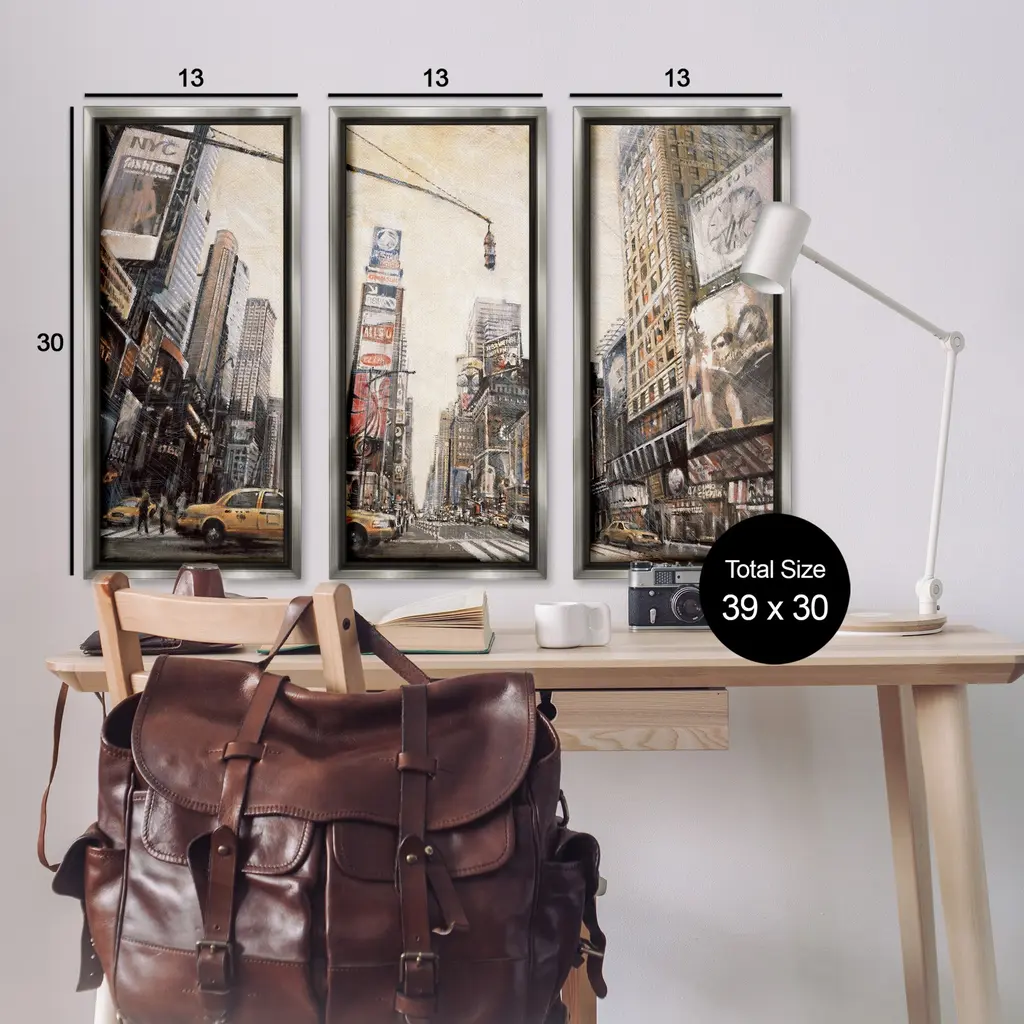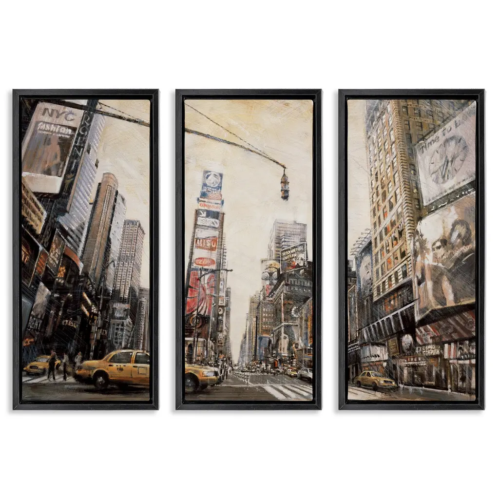 Elevate your home or office to the next level with Stupell Framed Floating Canvas Wall Art. Our premium hand-stretched canvas is mounted securely into a sturdy lightweight frame. The museum-style gap between the wrapped canvas and the box frame gives the illusion of floating artwork. Stupell Wall Art is made in the USA.Features: Dimensions: 3 Piece Set, Each Frame is 11 x 1.7 x 25Three Piece Floating Frame Canvas Products are available as 11"x25" or 14"x31" Panels. All Floating Frame Canvas Products have a 1.7" Depth.Wall Art is Ready to Hang with Hardware Free Hanging. No Installation required. For Easy Set Up Lean or Layer Artwork on Shelf or Against Wall. Artwork is Permently Fixed into the Frame.Our elevated 1.7" Thick Floating Frame is the perfect complement to our canvas style Wall Art. We use only the highest quality inks in house with industry leading printing solutions. Canvas is hand stretched over a durable wood foundation and then mounted securly into a Modern Box Frame. Made in the USA.Artwork Relates To: City, Cityscape, Industrial, Town, New York, Taxi, CarDesign by Matthew Daniels
