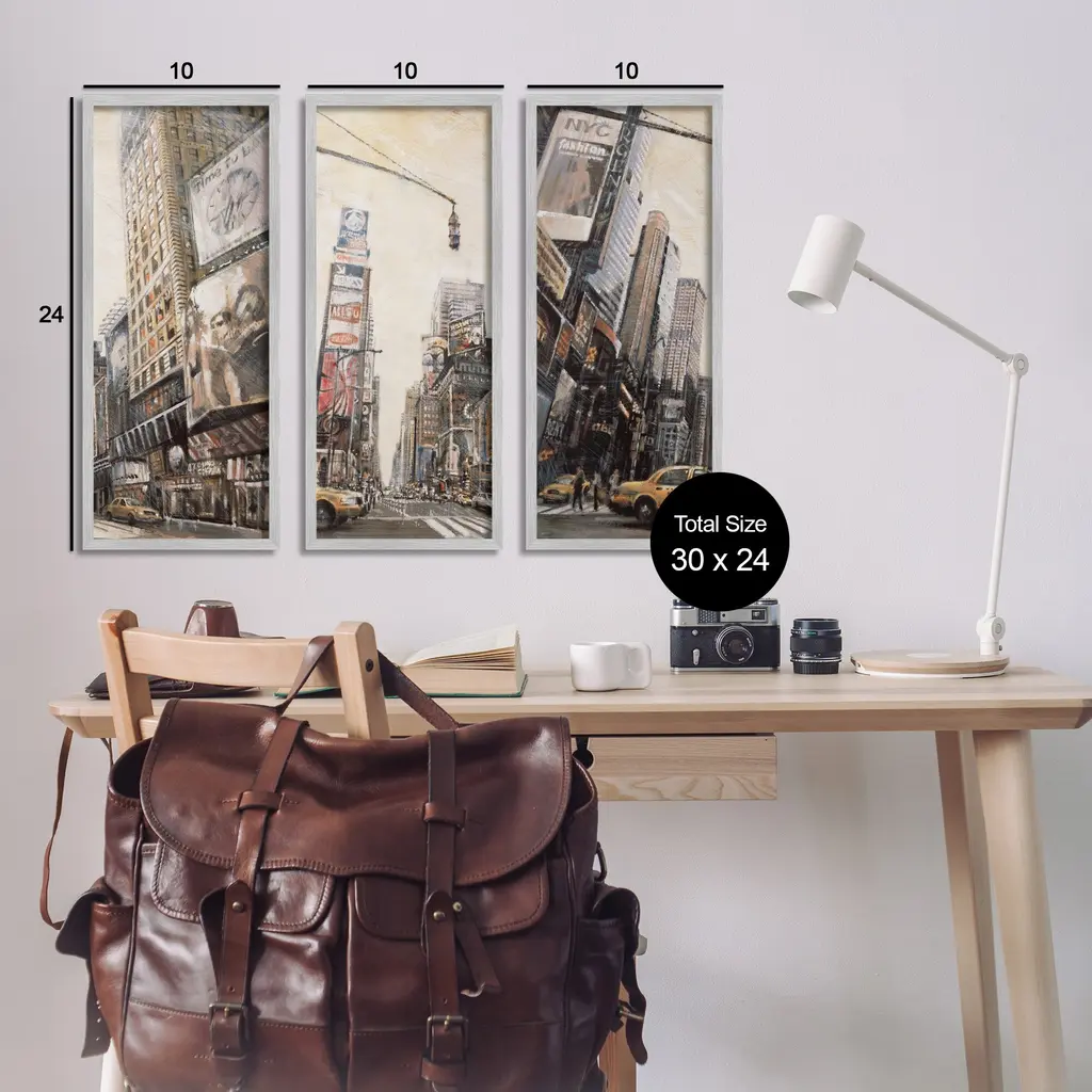Fill any space in your home or office with our Framed Wall Art Sets. Our framed artwork is securely mounted into a 1.5-inch thick wood grain frame and ready to hang. Frames are available in three alluring styles: black, gray farmhouse and white. Stupell Wall Art is made in the USA.Features: Dimensions: 3 Piece Set, Each Panel is 10 x 1.5 x 24 FramedWall Art is Ready to Hang with Hardware Free Hanging. No installation required. For Easy Set Up Lean or Layer Artwork on Shelf or Against Wall.Curated Wall Art Sets make it easy for you complete the theme for any room. Our giclée prints are carefully mounted on a durable MDF backing, and then perfectly finished in a 1.5 inch thick woodgrain frame. Mounted frame colors include black, gray farmhouse and white. Made In USA.Artwork Relates To: City, Cityscape, Industrial, Town, New York, Taxi, CarDesign by Matthew Daniels