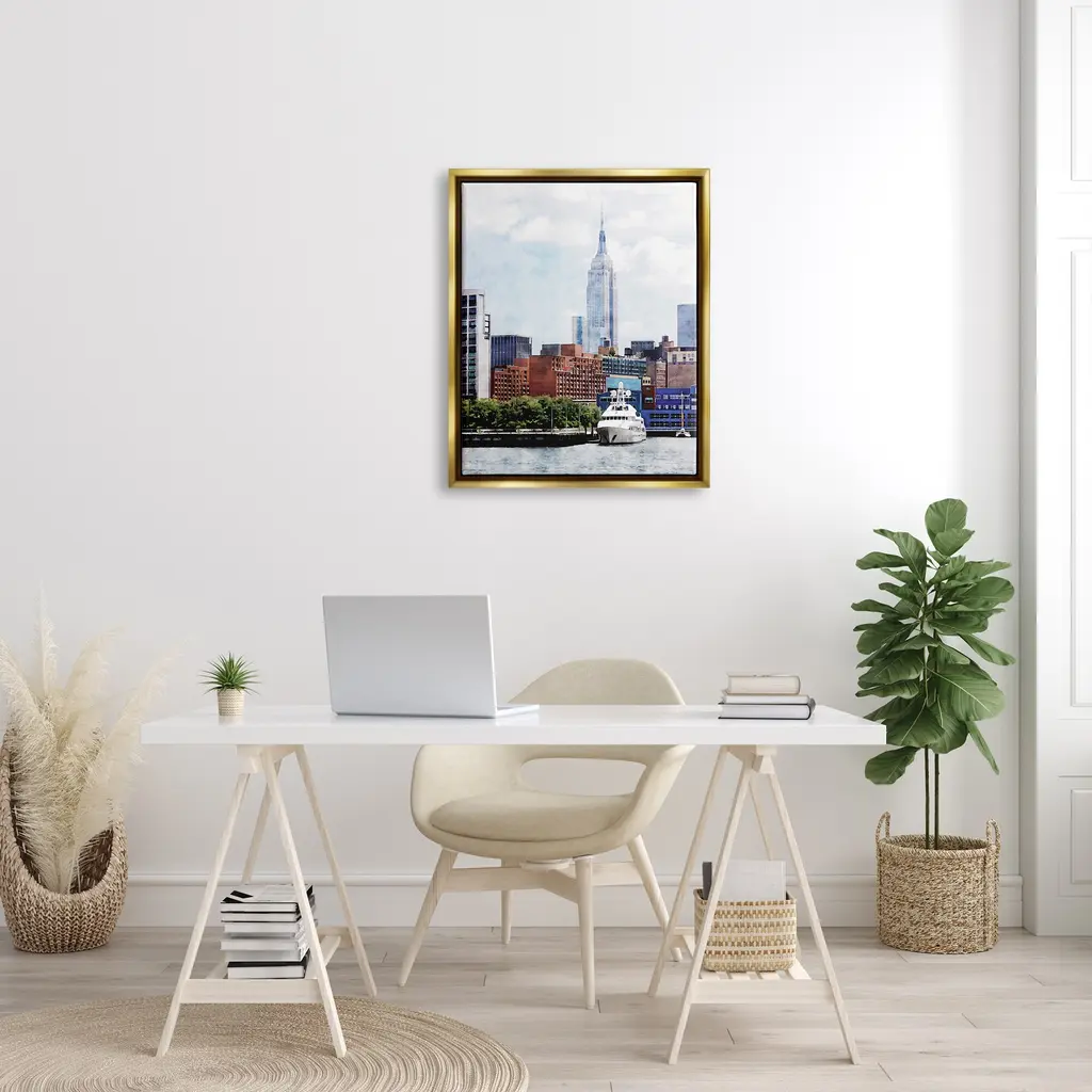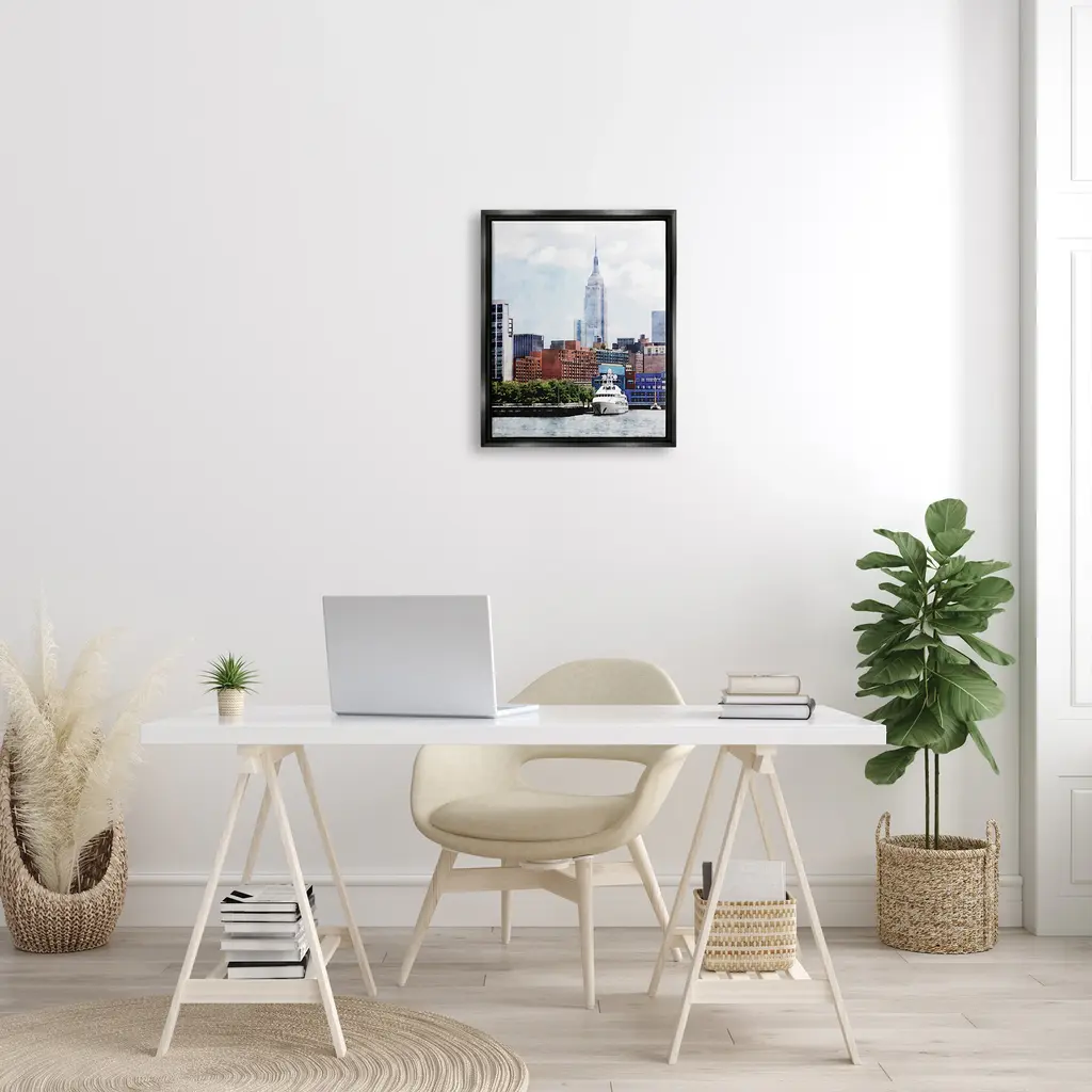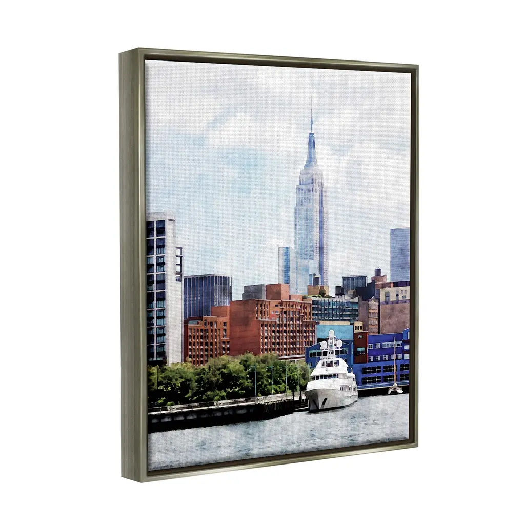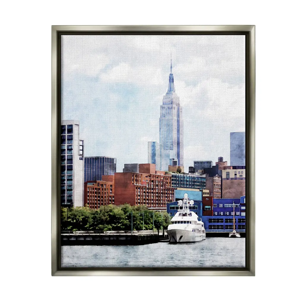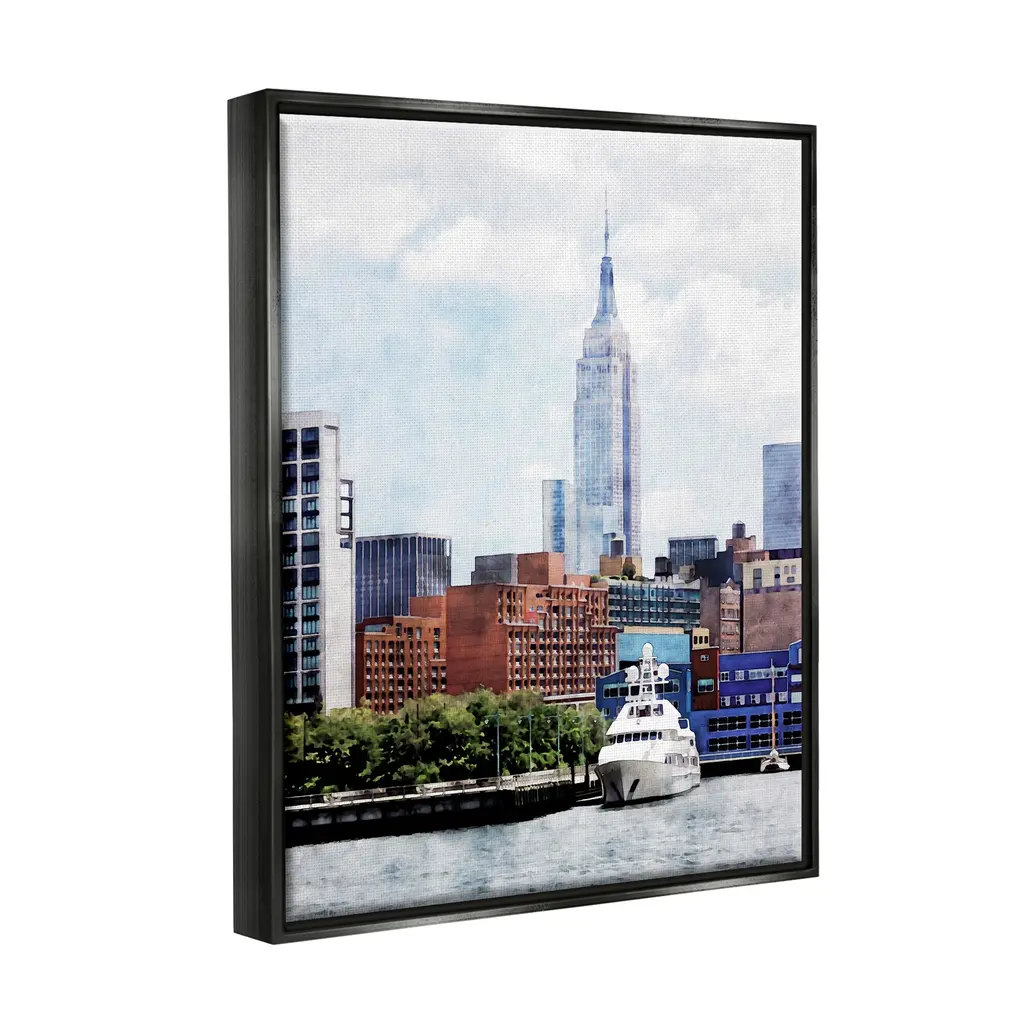 Elevate your home or office to the next level with Stupell Framed Floating Canvas Wall Art. Our premium hand-stretched canvas is mounted securely into a sturdy lightweight frame. The museum-style gap between the wrapped canvas and the box frame gives the illusion of floating artwork. Stupell Wall Art is made in the USA.Features: Dimensions: 17 x 1.7 x 21 Frame, 16 x 1.5 x 20 Canvas ArtFloating Frame Sizes Include Standard: 17 x 1.7 x 21 Oversized: 25 x 1.7 x 31Wall Art is Ready to Hang - No Installation or Hardware Needed. For Easy Set Up Lean or Layer Artwork on Shelf or Against Wall.Our elevated 1.7" Thick Floating Frame is the perfect complement to our canvas style Wall Art. We use only the highest quality inks in house with industry leading printing solutions. Canvas is hand stretched over a durable wood foundation and then mounted securly into a Modern Box Frame. Made in the USA.Artwork Relates To: Architecture, Building, Empire State Building, Landmark, New York City, Urban, Metropolis, BoatDesign by Jeff Pica