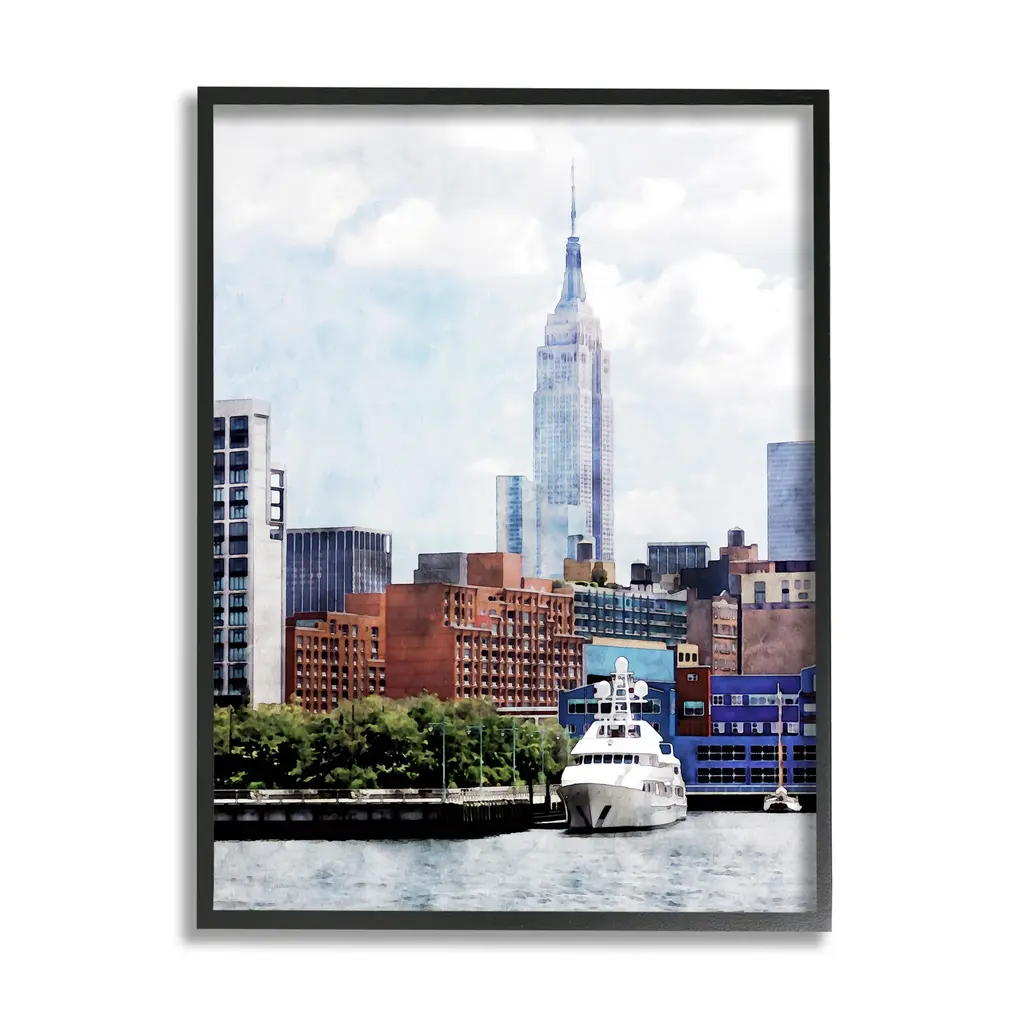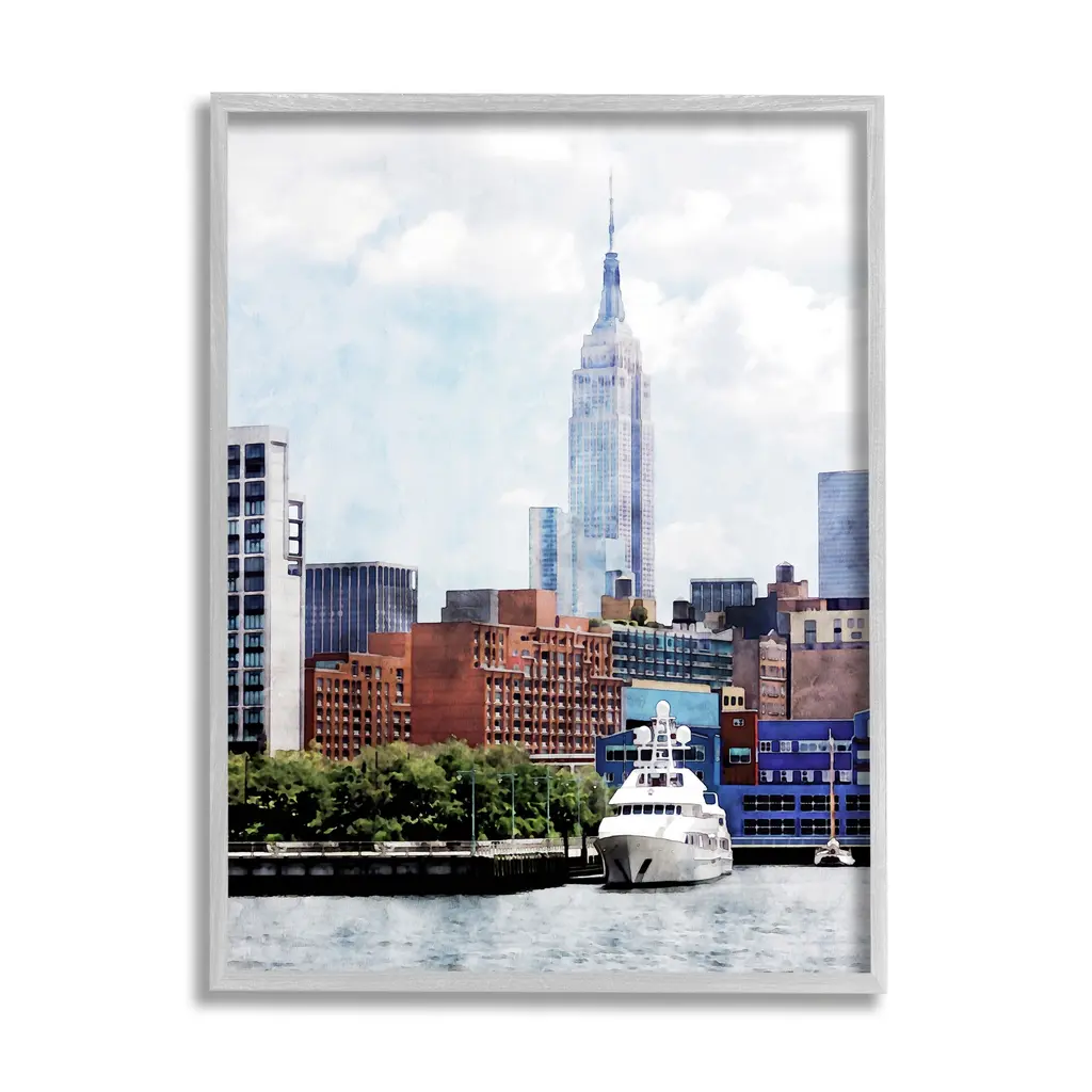 Add dimension to any room with our textured Framed Giclee Artwork. Our framed artwork is securely mounted into a 1.5-inch thick wood grain frame and ready to hang. Frames are available in three alluring styles: black, gray farmhouse and white. In addition, you should check out our oversized options if you want a statement piece. Stupell Wall Art is made in the USA.Features: Dimensions: 11 x 1.5 x 14 FramedFramed Giclee Sizes Include Standard: 11 x 1.5 x 14 Large: 16 x 1.5 x 20 Oversized: 24 x 1.5 x 30Wall Art is Ready to Hang - No Installation or Hardware Needed. For Easy Set Up Lean or Layer Artwork on Shelf or Against Wall.Our giclée prints are carefully mounted on a durable MDF backing, and then perfectly finished in a 1.5 inch thick woodgrain frame. Mounted frame colors include black, gray farmhouse and white. Made In USA.Artwork Relates To: Architecture, Building, Empire State Building, Landmark, New York City, Urban, Metropolis, BoatDesign by Jeff Pica