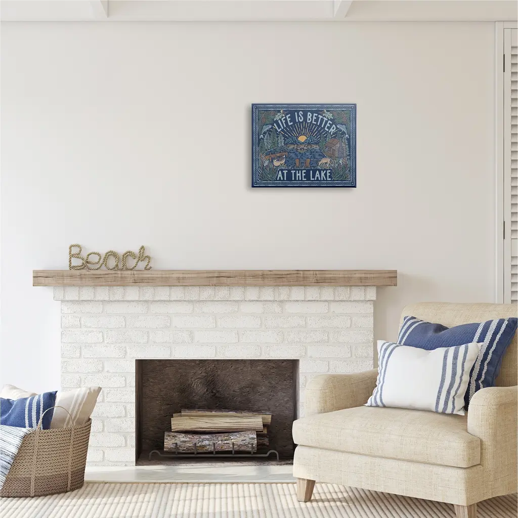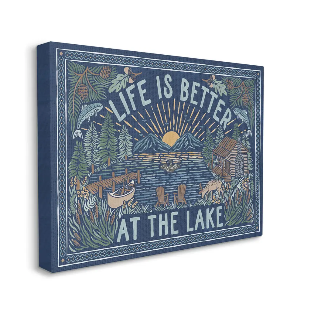 We create our stretched canvas to the highest standards. Using only the highest quality inks and canvas on Mimaki printers, we hand-cut and stretch each piece over a 1.5-inch thick wooden frame for hanging. As a result, the art comes ready to hang on the sturdy ledge with no installation required. Stupell Wall Art is made in the USA.Features: Dimensions: 20 x 1.5 x 16 InchesStretched Canvas Sizes Include Standard: 20 x 1.5 x 16 Large: 30 x 1.5 x 20 X-Large: 40 x 1.5 x 30 Oversized: 48 x 1.5 x 36Wall Art is Ready to Hang with Hardware Free Hanging. No installation required. For Easy Set Up Lean or Layer Artwork on Shelf or Against Wall.Our stretched canvas is created with the highest standards. We use only the highest quality inks and canvas on our in house Mimaki printers, and then hand cut and stretch each piece over a 1.5 inch thick wooden frame for hanging. Made In USA.Artwork Relates To: Lake, Mountain, Nature, Cabin, Duck, Botanical, Plants, Canoe, Life Is Better At The LakeDesign by Laura Marshall