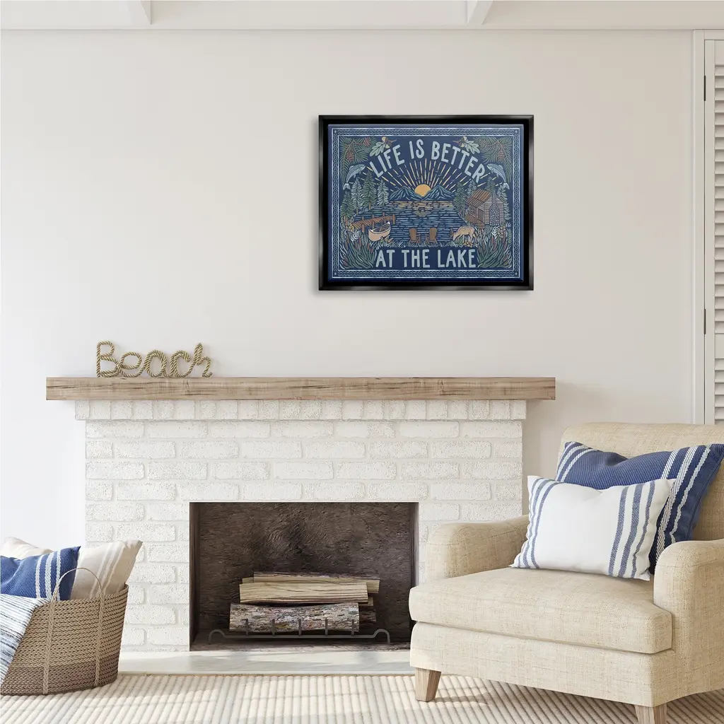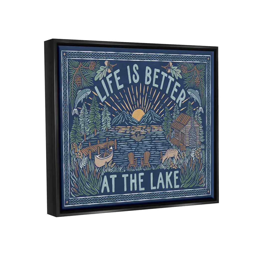 Elevate your home or office to the next level with Stupell Framed Floating Canvas Wall Art. Our premium hand-stretched canvas is mounted securely into a sturdy lightweight frame. The museum-style gap between the wrapped canvas and the box frame gives the illusion of floating artwork. Stupell Wall Art is made in the USA.Features: Dimensions: 21 x 1.7 x 17 Frame, 20 x 1.5 x 16 Canvas ArtFloating Frame Sizes Include Standard: 21 x 1.7 x 17 Oversized: 31 x 1.7 x 25Wall Art is Ready to Hang with Hardware Free Hanging. No installation required. For Easy Set Up Lean or Layer Artwork on Shelf or Against Wall.Our elevated 1.7" Thick Floating Frame is the perfect complement to our canvas style Wall Art. We use only the highest quality inks in house with industry leading printing solutions. Canvas is hand stretched over a durable wood foundation and then mounted securly into a Modern Box Frame. Made in the USA.Artwork Relates To: Lake, Mountain, Nature, Cabin, Duck, Botanical, Plants, Canoe, Life Is Better At The LakeDesign by Laura Marshall