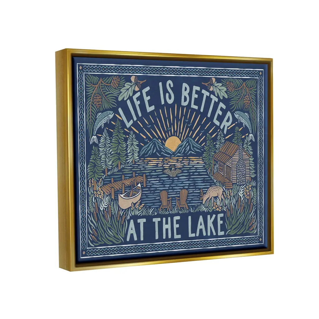 Elevate your home or office to the next level with Stupell Framed Floating Canvas Wall Art. Our premium hand-stretched canvas is mounted securely into a sturdy lightweight frame. The museum-style gap between the wrapped canvas and the box frame gives the illusion of floating artwork. Stupell Wall Art is made in the USA.Features: Dimensions: 21 x 1.7 x 17 Frame, 20 x 1.5 x 16 Canvas ArtFloating Frame Sizes Include Standard: 21 x 1.7 x 17 Oversized: 31 x 1.7 x 25Wall Art is Ready to Hang with Hardware Free Hanging. No installation required. For Easy Set Up Lean or Layer Artwork on Shelf or Against Wall.Our elevated 1.7" Thick Floating Frame is the perfect complement to our canvas style Wall Art. We use only the highest quality inks in house with industry leading printing solutions. Canvas is hand stretched over a durable wood foundation and then mounted securly into a Modern Box Frame. Made in the USA.Artwork Relates To: Lake, Mountain, Nature, Cabin, Duck, Botanical, Plants, Canoe, Life Is Better At The LakeDesign by Laura Marshall