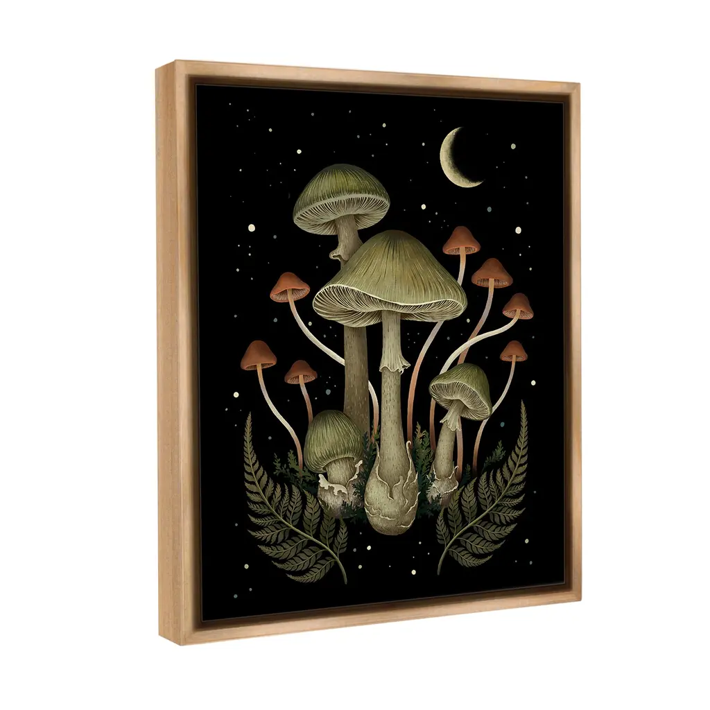 Elevate your home or office to the next level with Stupell Framed Floating Canvas Wall Art. Our premium hand-stretched canvas is mounted securely into a sturdy lightweight frame. The museum-style gap between the wrapped canvas and the box frame gives the illusion of floating artwork. Stupell Wall Art is made in the USA.Features: Dimensions: 17 x 1.7 x 21 Frame, 16 x 1.5 x 20 Canvas ArtFloating Frame Canvas Products are available in sizes 17"x21" and 25"x31". All Floating Frame Canvas Products have a 1.7" Depth.Wall Art is Ready to Hang with Hardware Free Hanging. No Installation required. For Easy Set Up Lean or Layer Artwork on Shelf or Against Wall. Artwork is Permently Fixed into the Frame.Our elevated 1.7" Thick Floating Frame is the perfect complement to our canvas style Wall Art. We use only the highest quality inks in house with industry leading printing solutions. Canvas is hand stretched over a durable wood foundation and then mounted securly into a Modern Box Frame. Made in the USA.Artwork Relates To: Fungus, Plant, Agaric, Mushroom, Amanita, Cottage, Astral, Moon, Pattern, Woodland, Leaf, Nature, FernDesign by Episodic Drawings