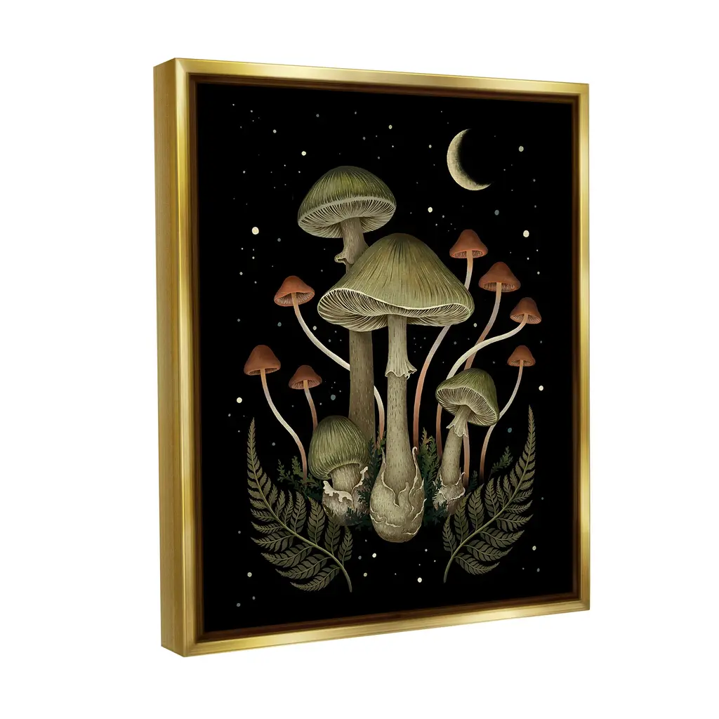 Stupell Night Mushrooms & Ferns Framed Floater Canvas Wall Art Design By Episodic Drawings - 25 X 31 - Gold