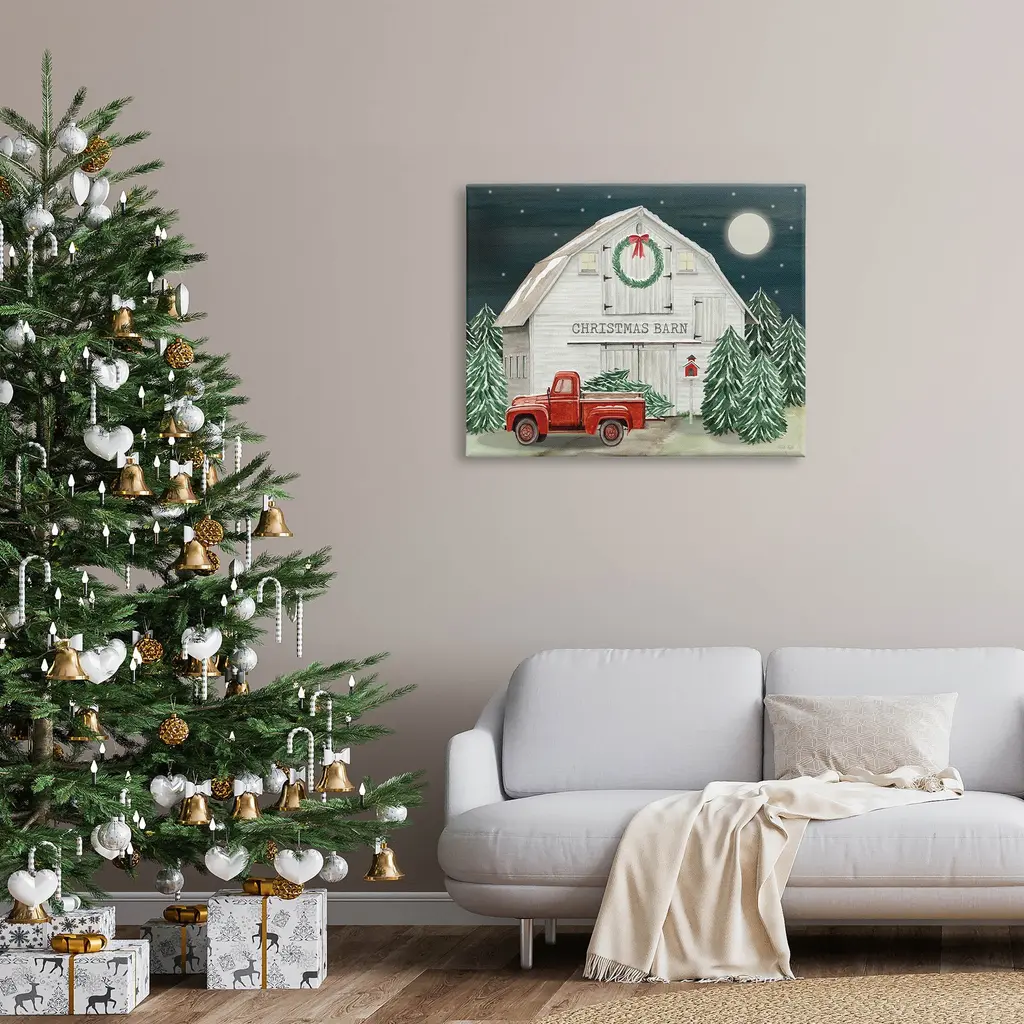 Proudly made in the USA, Our stretched canvas is created with the highest standards. We use only the highest quality inks and canvas on our in house Mimaki printers, and then hand cut and stretch each piece over a 1.5 inch thick wooden frame for hanging. The art comes ready to hang with no installation required.Features: Dimensions: 20 x 1.5 x 16 InchesStretched Canvas Sizes Include Standard: 20 x 1.5 x 16 Large: 30 x 1.5 x 20 X-Large: 40 x 1.5 x 30 Oversized: 48 x 1.5 x 36Wall Art is Ready to Hang - No Installation or Hardware Needed. For Easy Set Up Lean or Layer Artwork on Shelf or Against Wall.Our stretched canvas is created with the highest standards. We use only the highest quality inks and canvas on our in house Mimaki printers, and then hand cut and stretch each piece over a 1.5 inch thick wooden frame for hanging. Made In USA.Artwork Relates To: Truck, Farmhouse, Barn, Countryside, Holiday, Rural, FarmDesign by Cindy JacobsLiving Room, Den, Hallway, Office, Entryway, Study, Dining Room or Bed Room.Text Includes: Christmas Barn