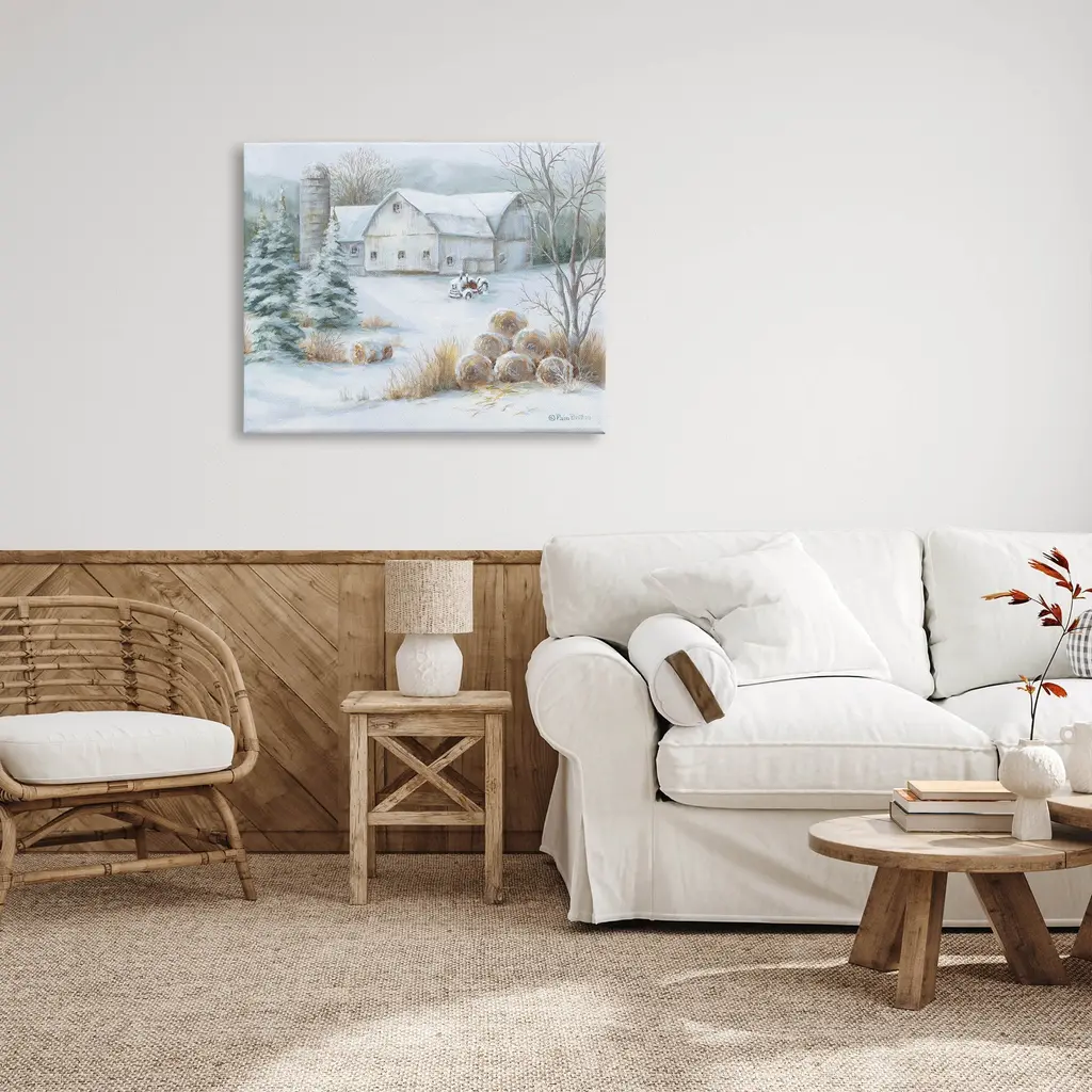 Proudly made in the USA, Our stretched canvas is created with the highest standards. We use only the highest quality inks and canvas on our in house Mimaki printers, and then hand cut and stretch each piece over a 1.5 inch thick wooden frame for hanging. The art comes ready to hang with no installation required.Features: Dimensions: 20 x 1.5 x 16 InchesStretched Canvas Sizes Include Standard: 20 x 1.5 x 16 Large: 30 x 1.5 x 20 X-Large: 40 x 1.5 x 30 Oversized: 48 x 1.5 x 36Wall Art is Ready to Hang - No Installation or Hardware Needed. For Easy Set Up Lean or Layer Artwork on Shelf or Against Wall.Our stretched canvas is created with the highest standards. We use only the highest quality inks and canvas on our in house Mimaki printers, and then hand cut and stretch each piece over a 1.5 inch thick wooden frame for hanging. Made In USA.Artwork Relates To: Nature, Outdoors, Countryside, Tree, Painting, Building, Architecture, Rural, Farm, Barn, SnowDesign by Pam Britton