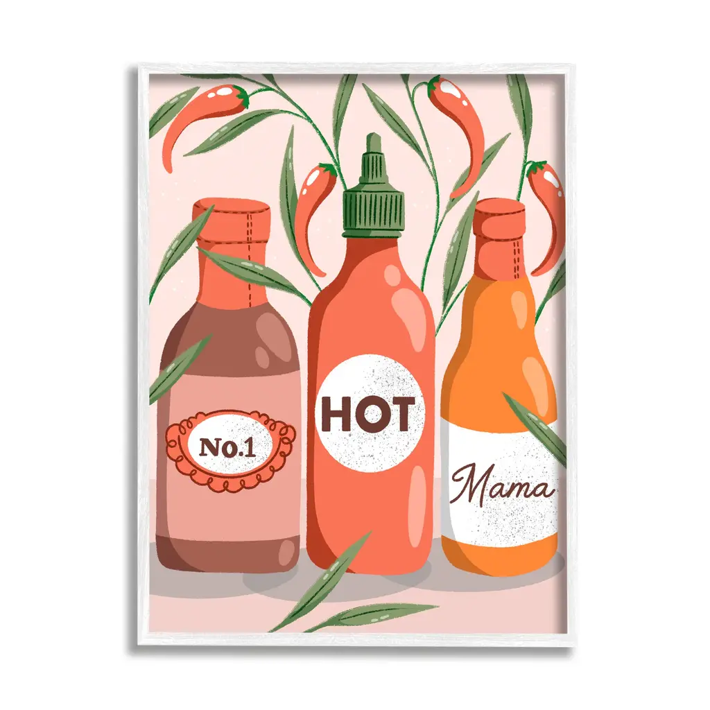 Add dimension to any room with our textured Framed Giclee Artwork. Our framed artwork is securely mounted into a 1.5-inch thick wood grain frame and ready to hang. Frames are available in three alluring styles: black, gray farmhouse and white. In addition, you should check out our oversized options if you want a statement piece. Stupell Wall Art is made in the USA.Features: Dimensions: 11 x 1.5 x 14 FramedFramed Giclee Sizes Include Standard: 11 x 1.5 x 14 Large: 16 x 1.5 x 20 Oversized: 24 x 1.5 x 30Wall Art is Ready to Hang - No Installation or Hardware Needed. For Easy Set Up Lean or Layer Artwork on Shelf or Against Wall.Our giclée prints are carefully mounted on a durable MDF backing, and then perfectly finished in a 1.5 inch thick woodgrain frame. Mounted frame colors include black, gray farmhouse and white. Made In USA.Artwork Relates To: Bottle, Plant, Chili, Hot Sauce, Mother's Day, No. 1 Hot MamaDesign by Dominika Godette