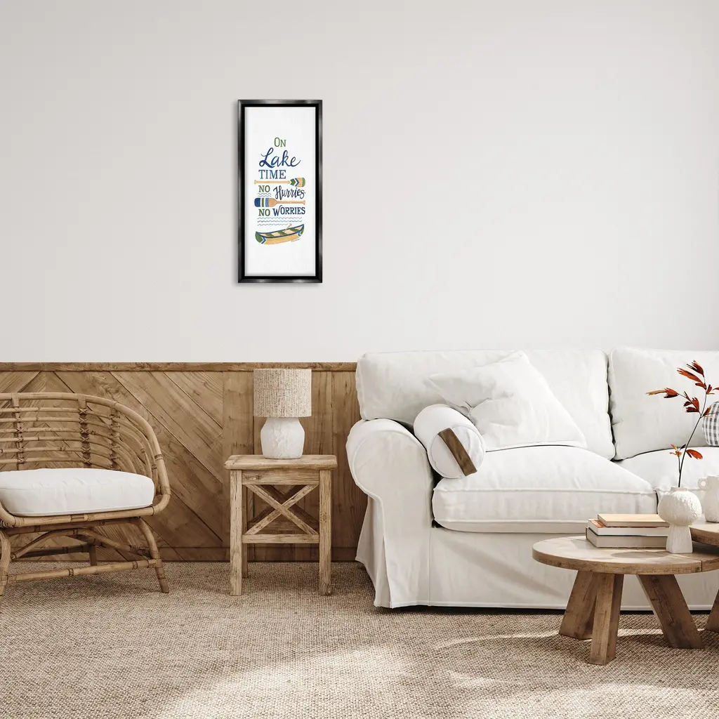 Stupell No Hurries On Lake Time Framed Floater Canvas Wall Art Design By Deb Strain - 11 X 25 - Black