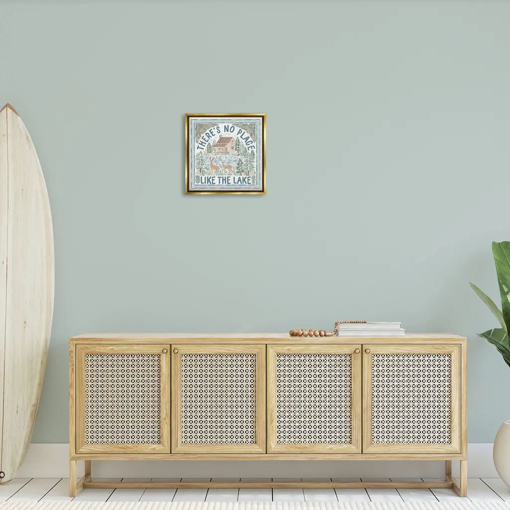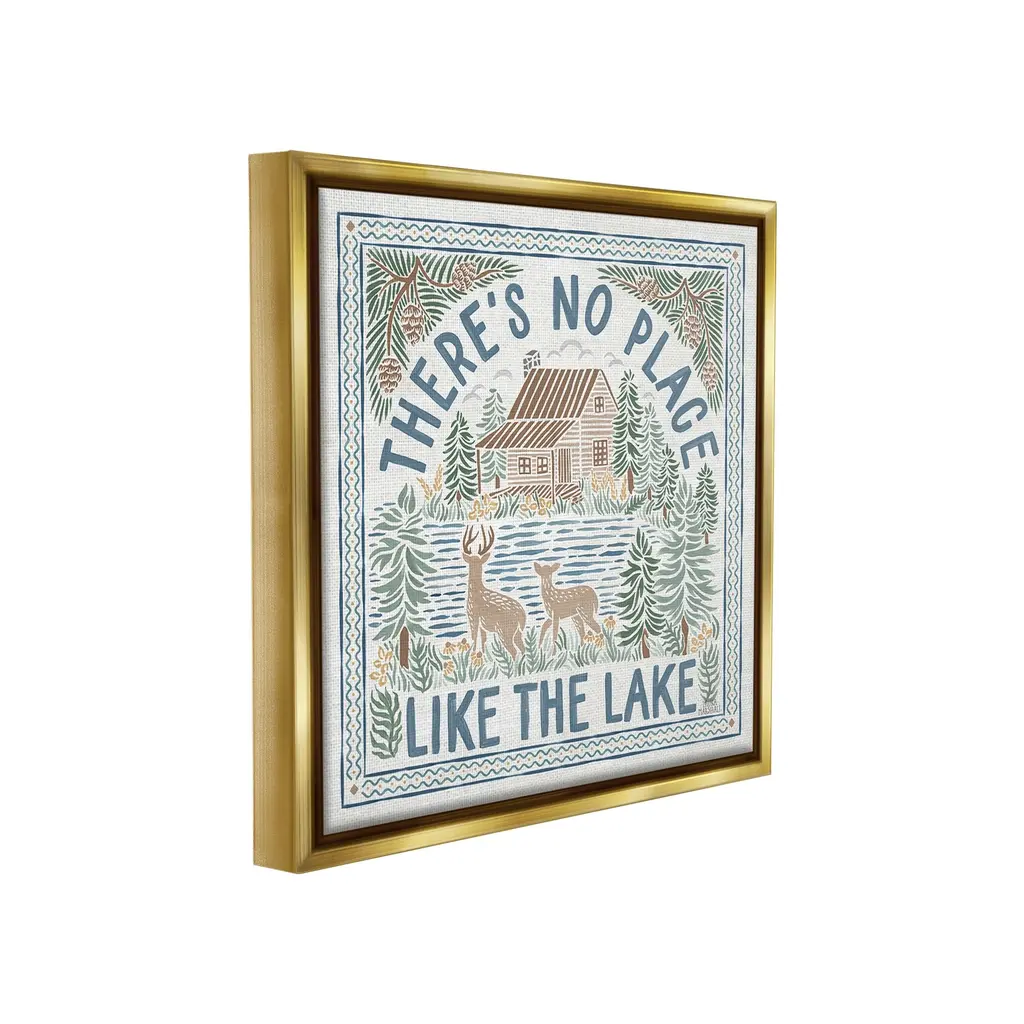 Stupell No Place Like Lake Framed Floater Canvas Wall Art Design By Laura Marshall - 18 X 18 - Gold