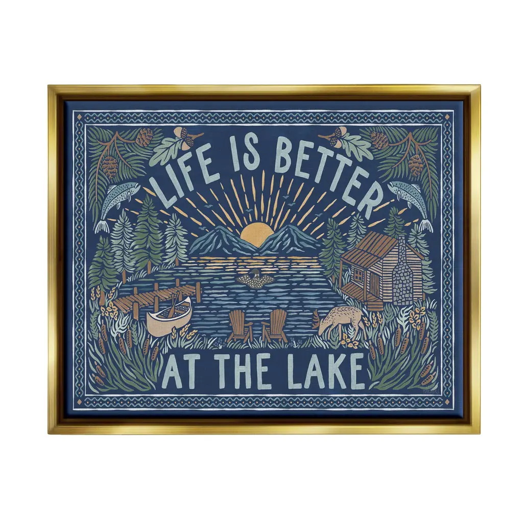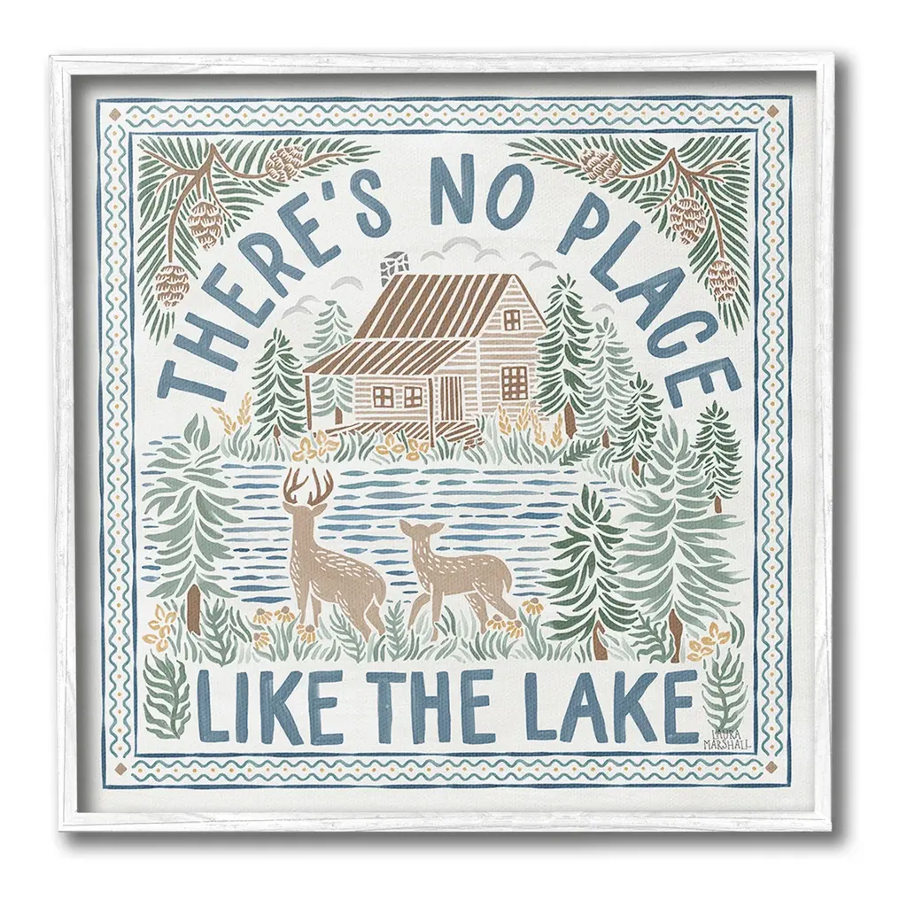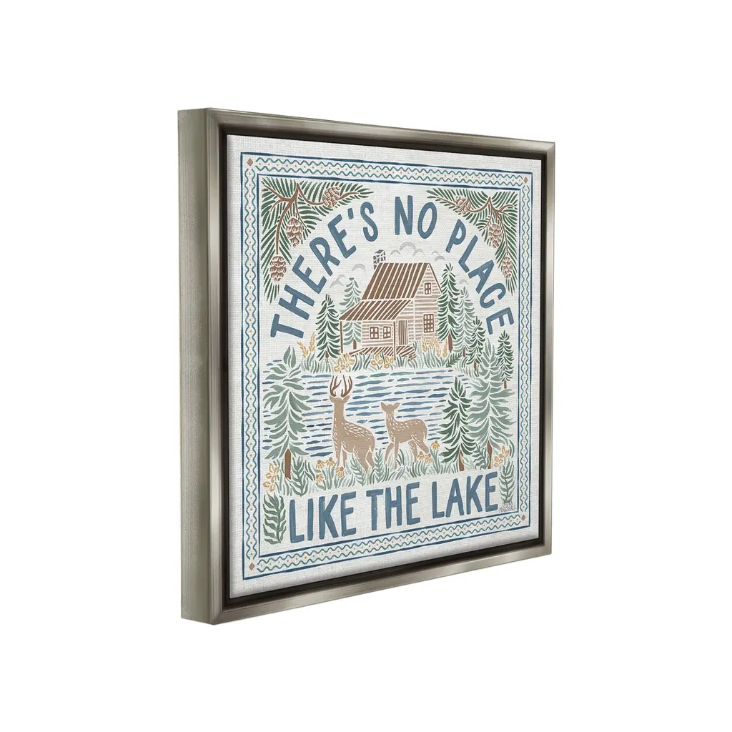 Elevate your home or office to the next level with Stupell Framed Floating Canvas Wall Art. Our premium hand-stretched canvas is mounted securely into a sturdy lightweight frame. The museum-style gap between the wrapped canvas and the box frame gives the illusion of floating artwork. Stupell Wall Art is made in the USA.Features: Dimensions: 18 x 1.7 x 18 Frame, 17 x 1.5 x 17 Canvas ArtFloating Frame Canvas Products are available in sizes 18"x18" and 25"x25". All Floating Frame Canvas Products have a 1.7" Depth.Wall Art is Ready to Hang with Hardware Free Hanging. No Installation required. For Easy Set Up Lean or Layer Artwork on Shelf or Against Wall. Artwork is Permently Fixed into the Frame.Our elevated 1.7" Thick Floating Frame is the perfect complement to our canvas style Wall Art. We use only the highest quality inks in house with industry leading printing solutions. Canvas is hand stretched over a durable wood foundation and then mounted securly into a Modern Box Frame. Made in the USA.Artwork Relates To: Animal, Deer, Mammal, Wildlife, Nature, Lake, Woodland, Cabin, Lodge, Rustic, Pattern, Botanical, Pinecone, Deer, There's No Place Like The LakeDesign by Laura Marshall