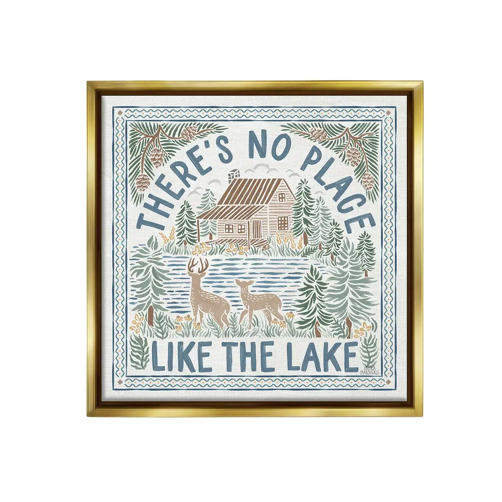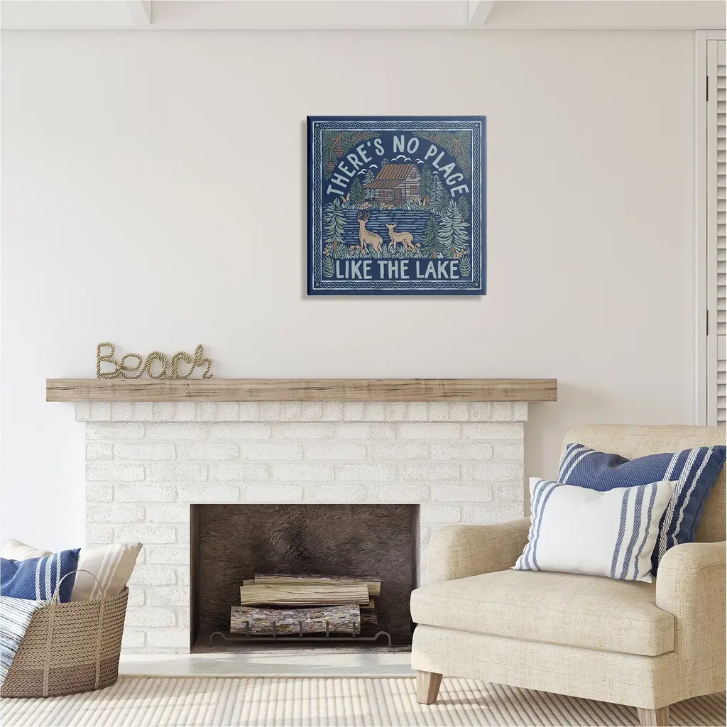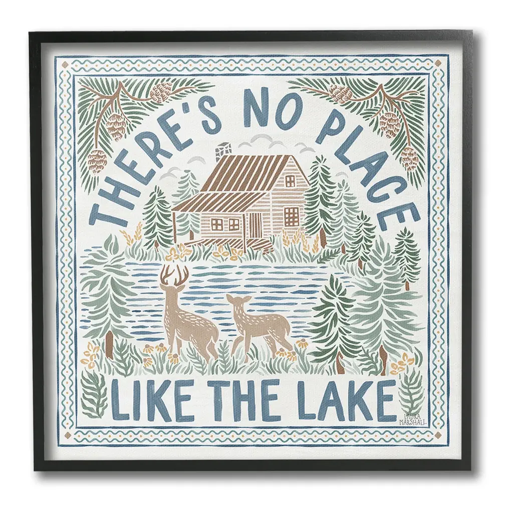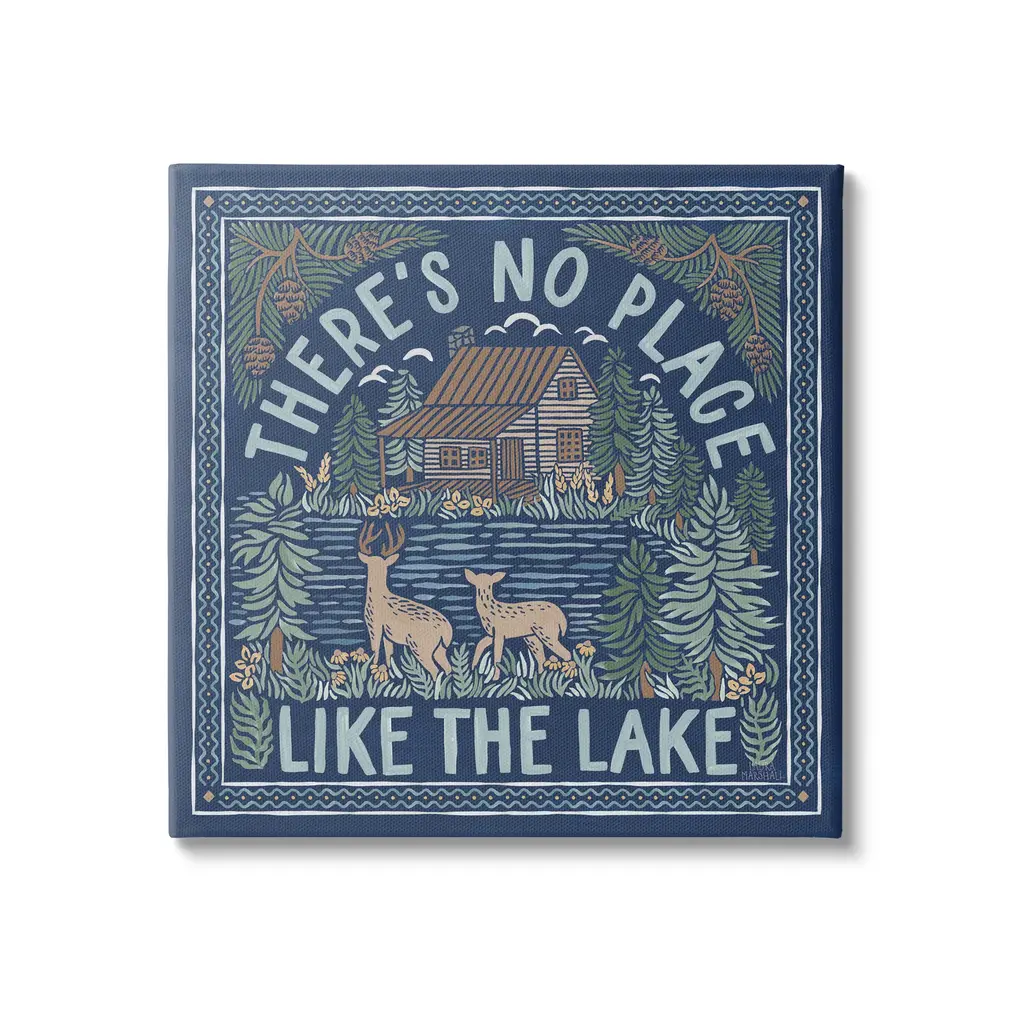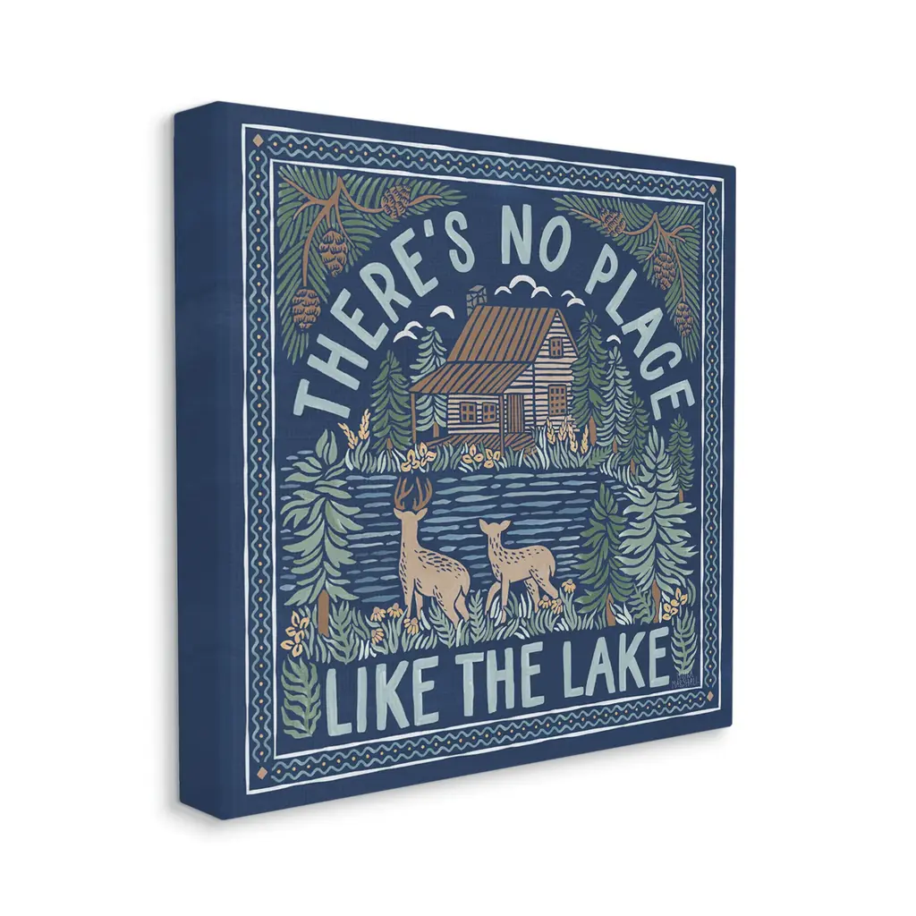 We create our stretched canvas to the highest standards. Using only the highest quality inks and canvas on Mimaki printers, we hand-cut and stretch each piece over a 1.5-inch thick wooden frame for hanging. As a result, the art comes ready to hang on the sturdy ledge with no installation required. Stupell Wall Art is made in the USA.Features: Dimensions: 17 x 1.5 x 17 InchesStretched Canvas Sizes Include Standard: 17 x 1.5 x 17 Large: 24 x 1.5 x 24 X-Large: 30 x 1.5 x 30 Oversized: 36 x 1.5 x 36Wall Art is Ready to Hang with Hardware Free Hanging. No installation required. For Easy Set Up Lean or Layer Artwork on Shelf or Against Wall.Our stretched canvas is created with the highest standards. We use only the highest quality inks and canvas on our in house Mimaki printers, and then hand cut and stretch each piece over a 1.5 inch thick wooden frame for hanging. Made In USA.Artwork Relates To: Lake, Mountain, Nature, Cabin, Duck, Botanical, Plants, Fish, Canoe, There's No Place Like the LakeDesign by Laura Marshall