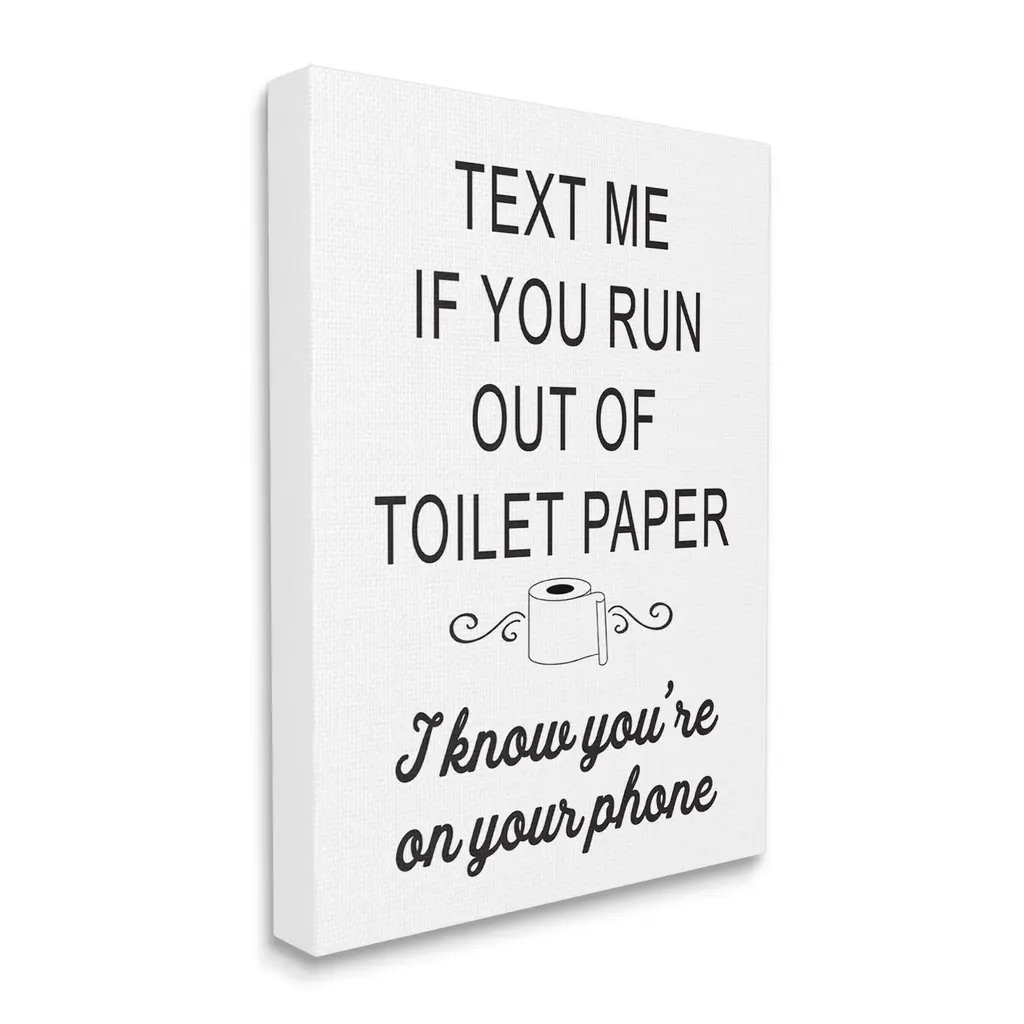 Proudly made in the USA, Our stretched canvas is created with the highest standards. We use only the highest quality inks and canvas on our in house Mimaki printers, and then hand cut and stretch each piece over a 1.5 inch thick wooden frame for hanging. The art comes ready to hang with no installation required.Features: Wall Art is Ready to Hang - No Installation or Hardware Needed. For Easy Set Up Lean or Layer Artwork on Shelf or Against Wall.Our stretched canvas is created with the highest standards. We use only the highest quality inks and canvas on our in house Mimaki printers, and then hand cut and stretch each piece over a 1.5 inch thick wooden frame for hanging. Made In USA.Artwork Relates To: Toilet Paper; Symbol; Text; TypographyDesign by Lettered and Lined
